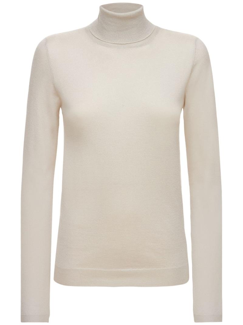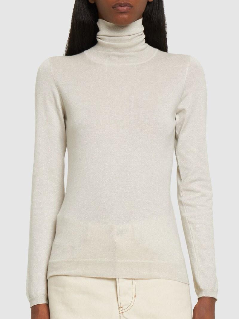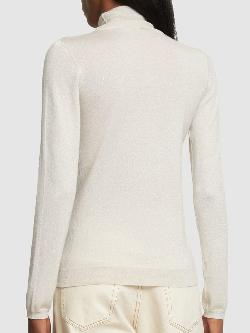 羊绒混纺金银丝针织毛衣 - 象牙色 - 女士 - Brunello Cucinelli - 罗纹领口、袖口和下摆