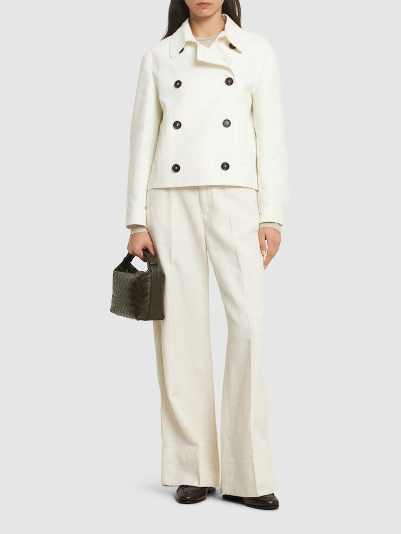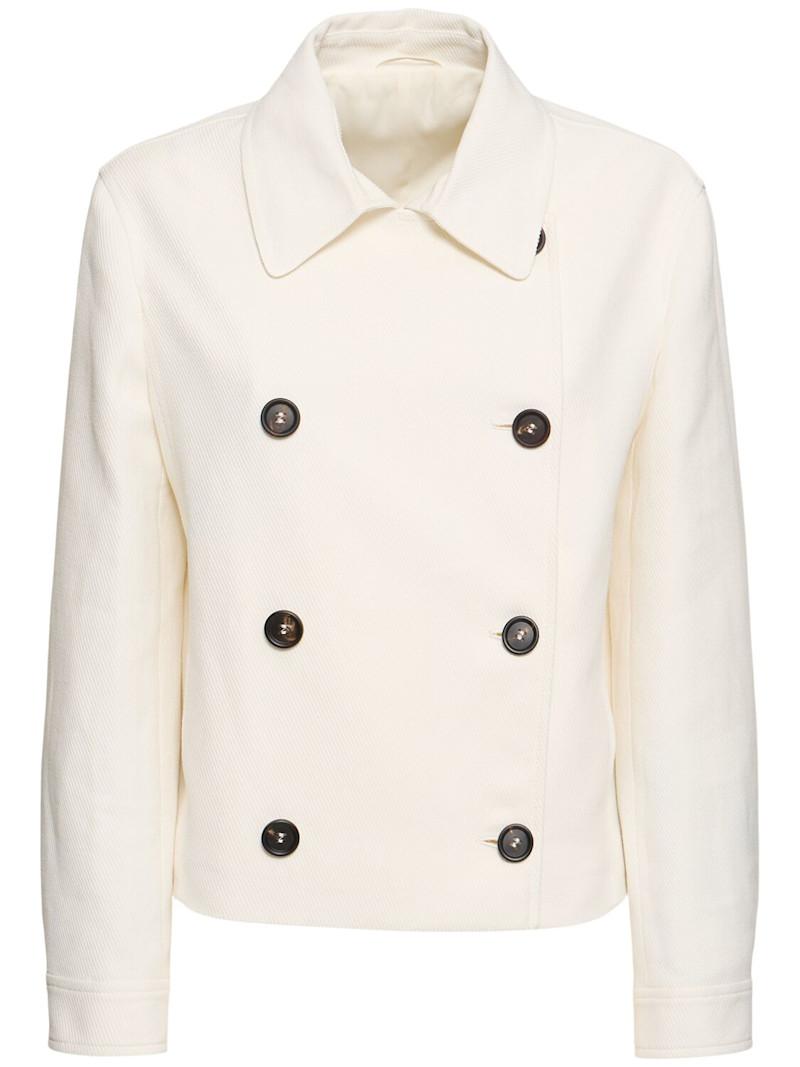 填充棉&亚麻夹克 - 象牙色 - 女士 - Brunello Cucinelli - 正面纽扣开合