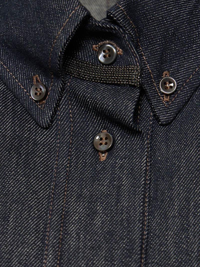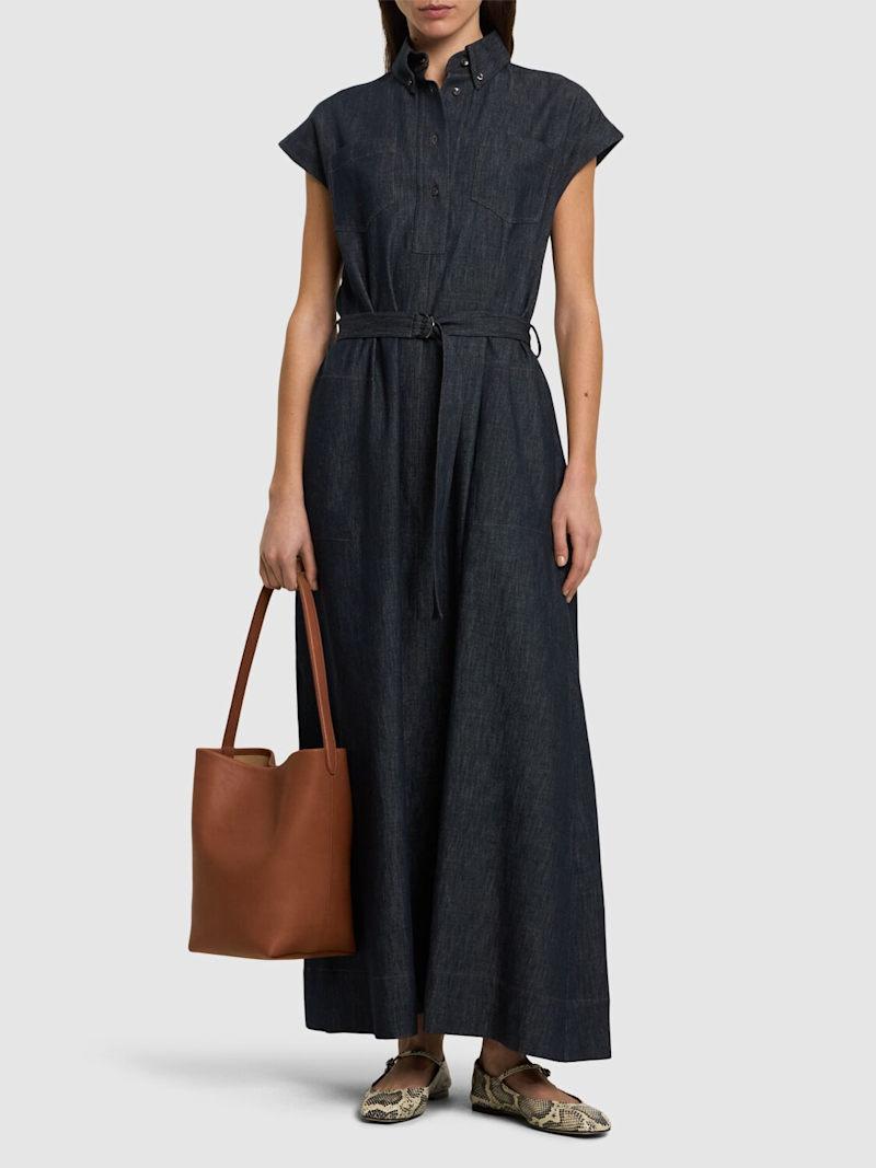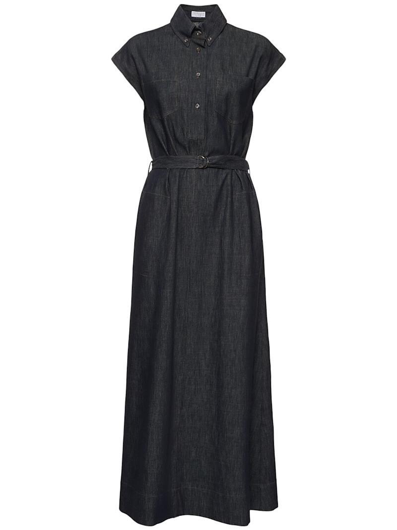 牛仔迷笛衬衫连衣裙 - 蓝色 - 女士 - Brunello Cucinelli - 正面纽扣开合.