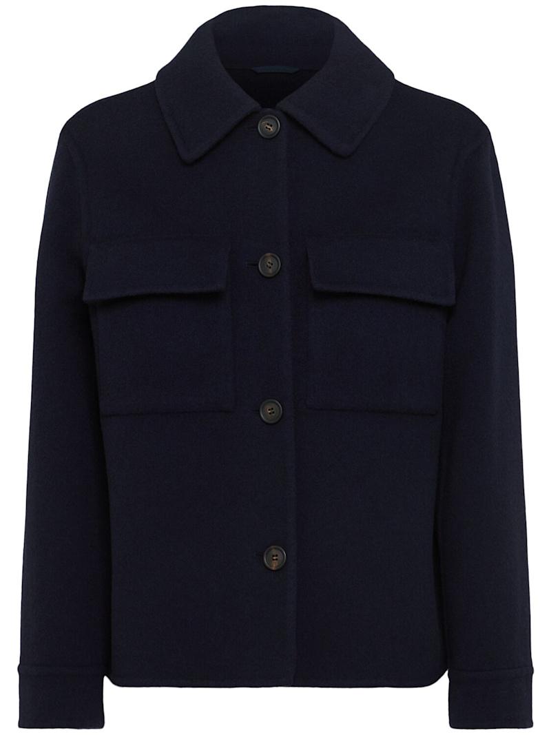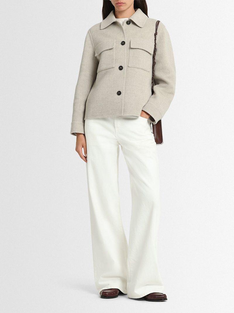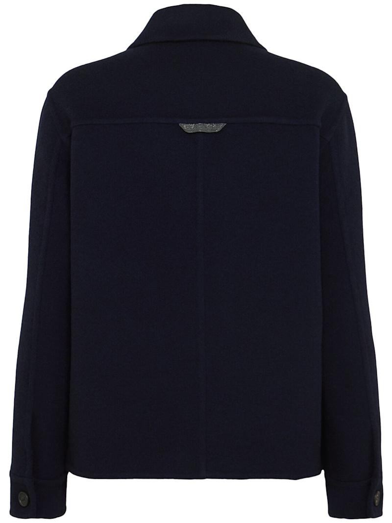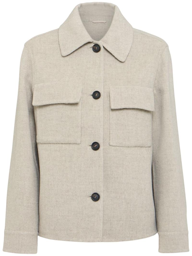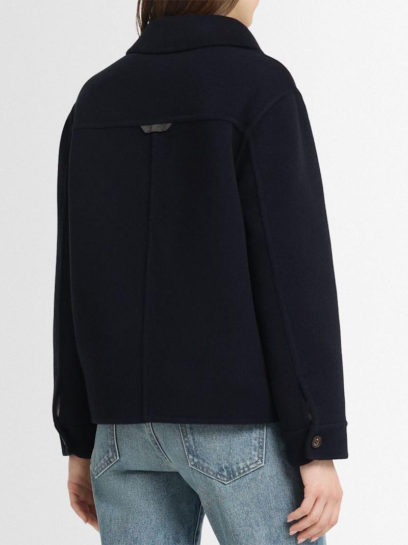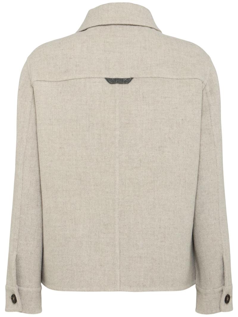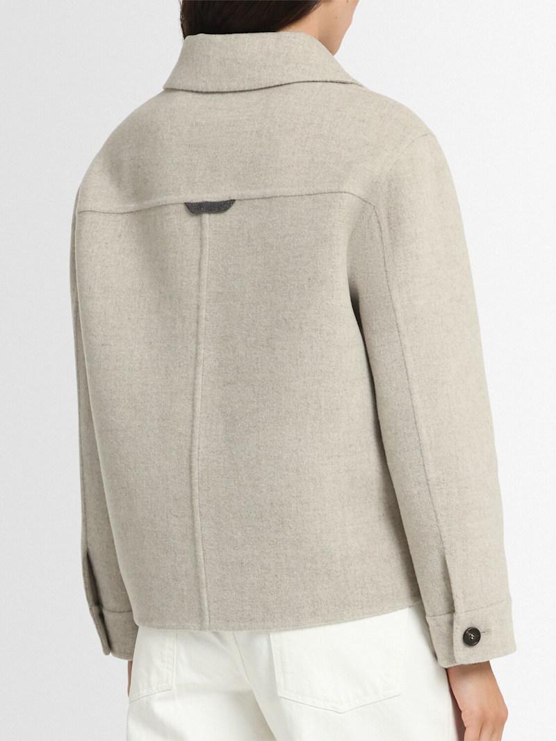 羊毛混纺短款大衣 - 米黄色 - 女士 - Brunello Cucinelli - 正面纽扣开合.
