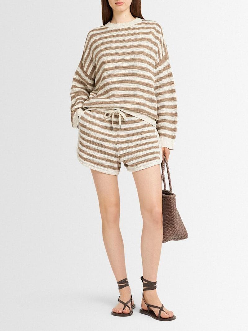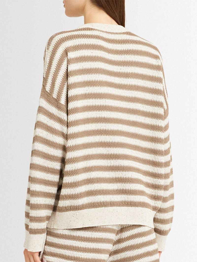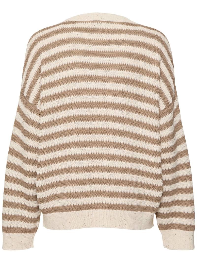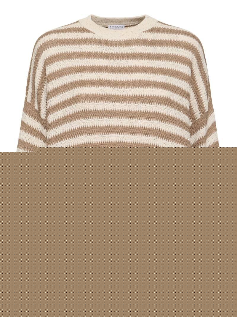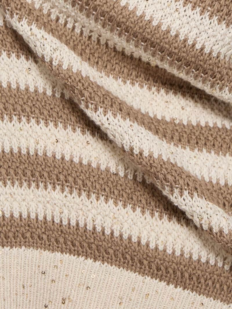 混棉毛衣 - 米黄色/棕色 - 女士 - Brunello Cucinelli - 罗纹领口、袖口和下摆