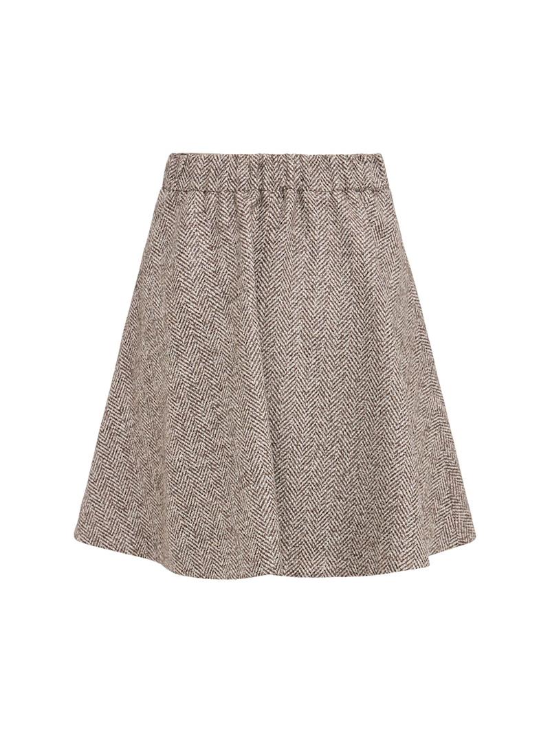 羊毛混纺针织迷你短裙 - 棕色/多色 - 女士 - Brunello Cucinelli - 背面松紧腰头
