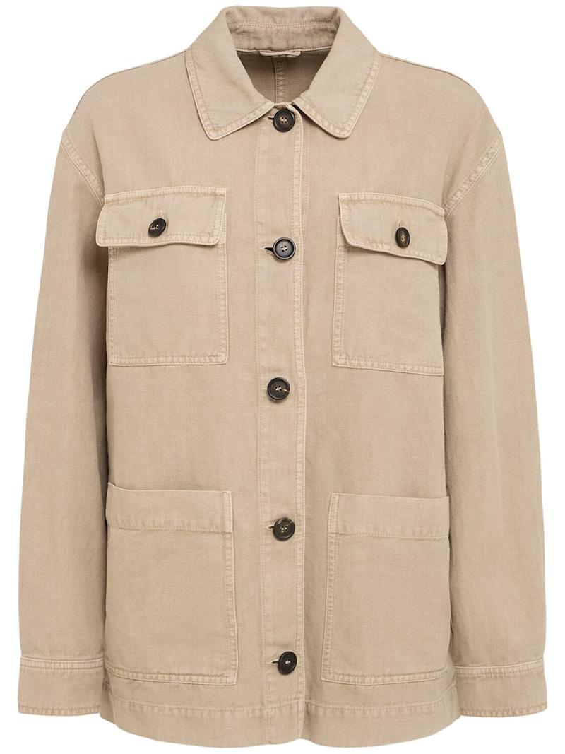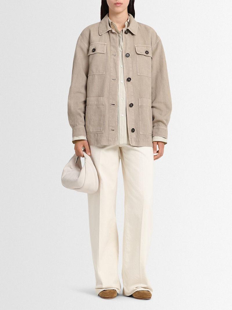 混棉夹克 - 棕色 - 女士 - Brunello Cucinelli - 正面纽扣开合.