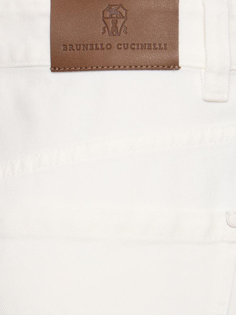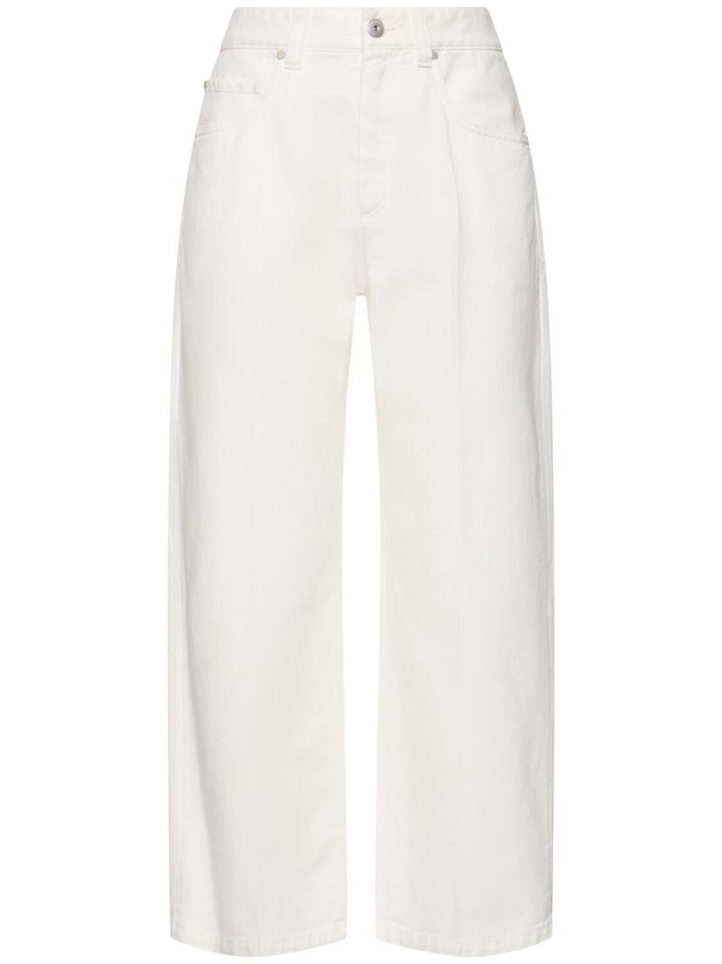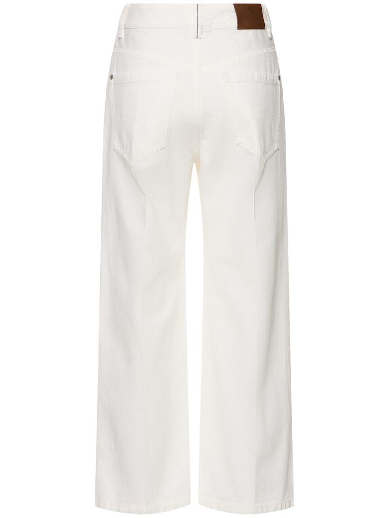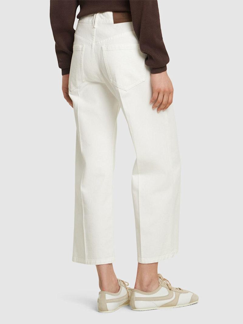 棉质喇叭裤 - 白色 - 女士 - Brunello Cucinelli - 正面纽扣和隐藏式拉链开合.