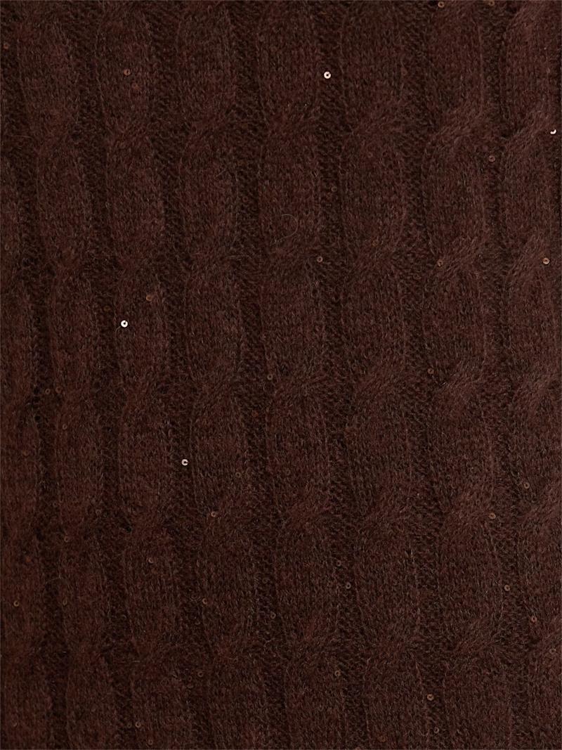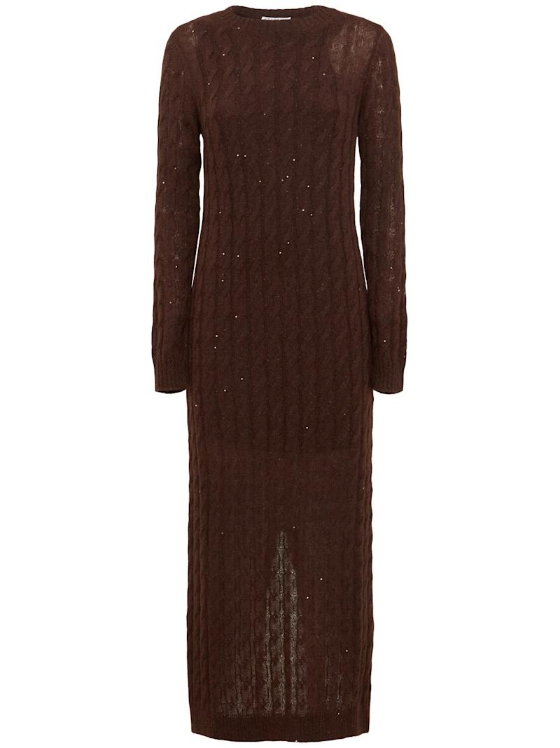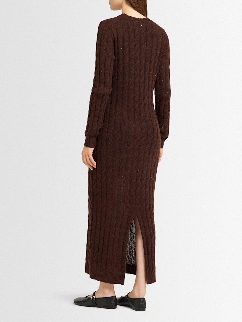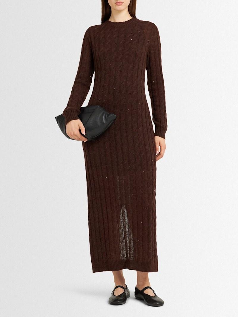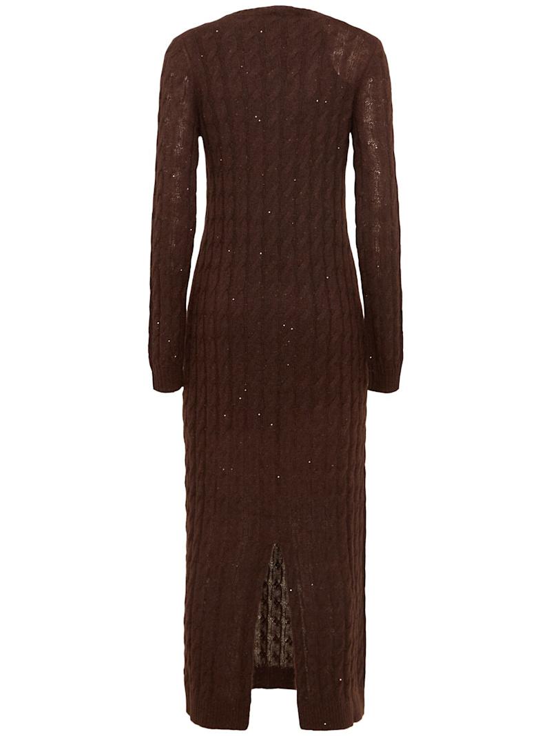装饰马海毛混纺针织连衣裙 - 棕色 - 女士 - Brunello Cucinelli - 罗纹领口、袖口和下摆.