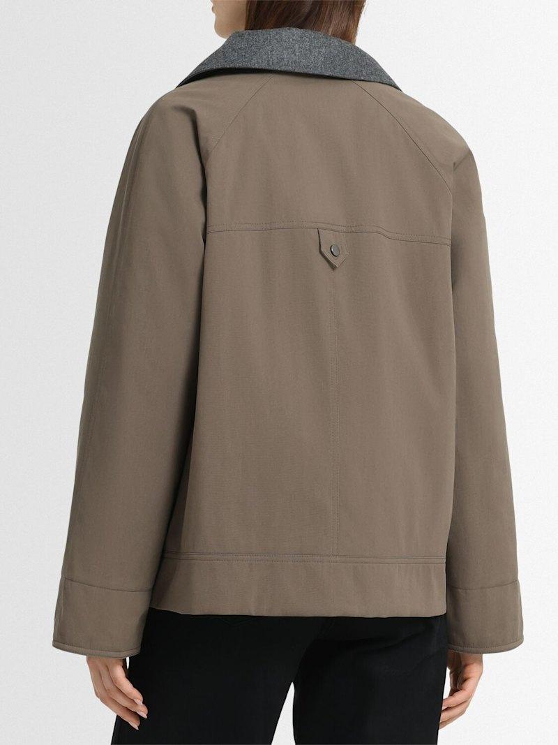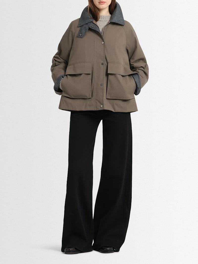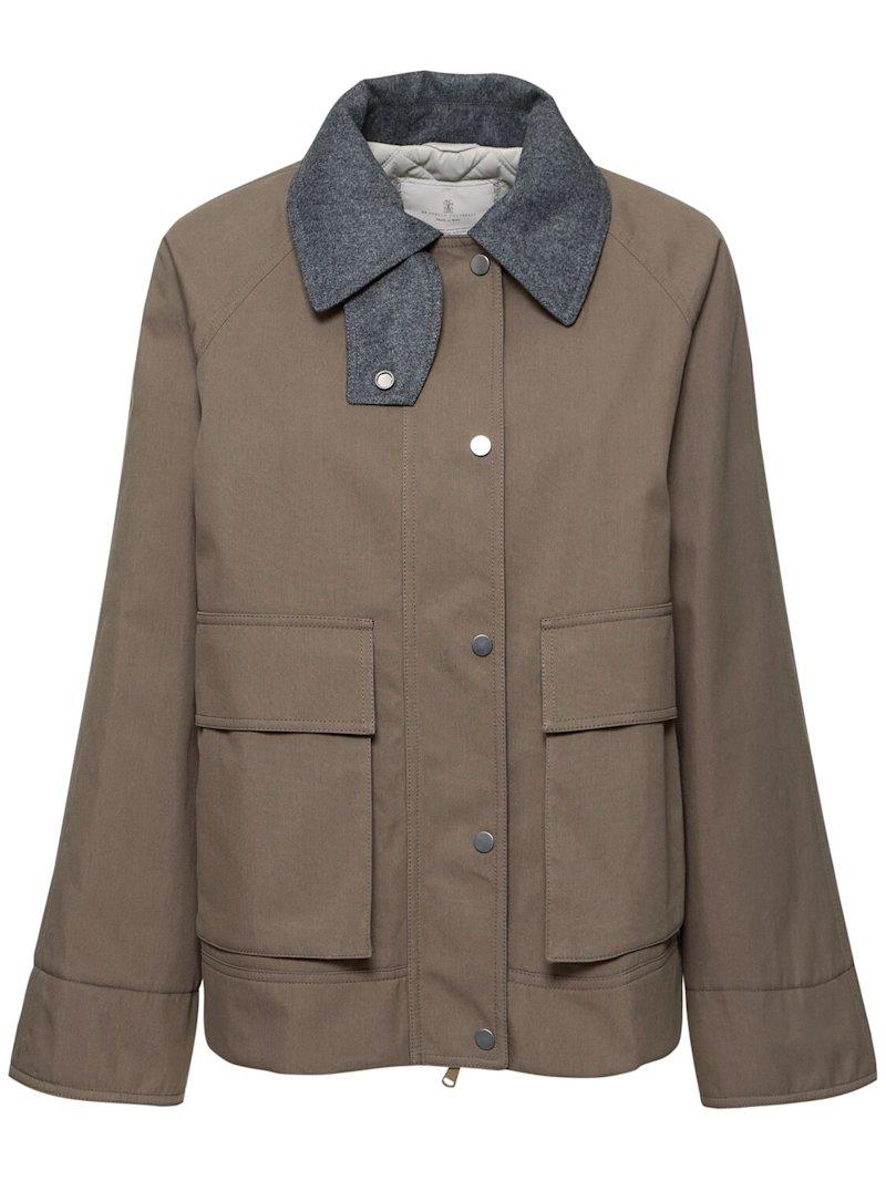混棉帆布夹克 - 棕色 - 女士 - Brunello Cucinelli - 正面按扣和隐形拉链开合.