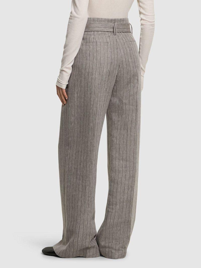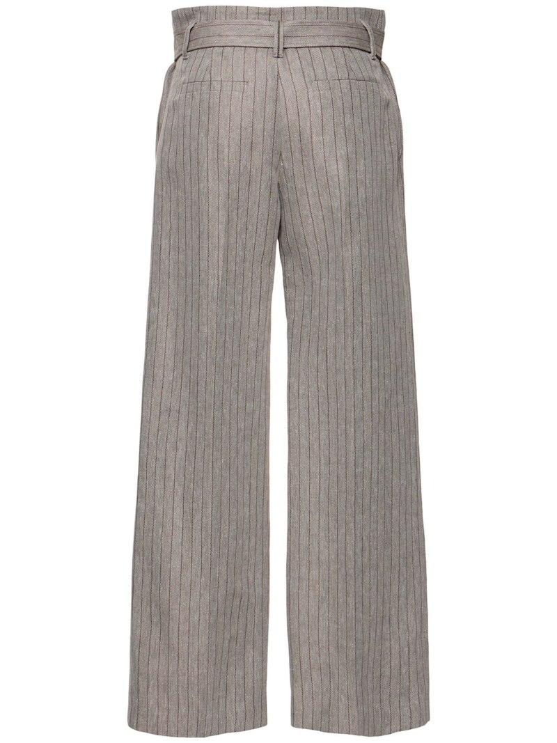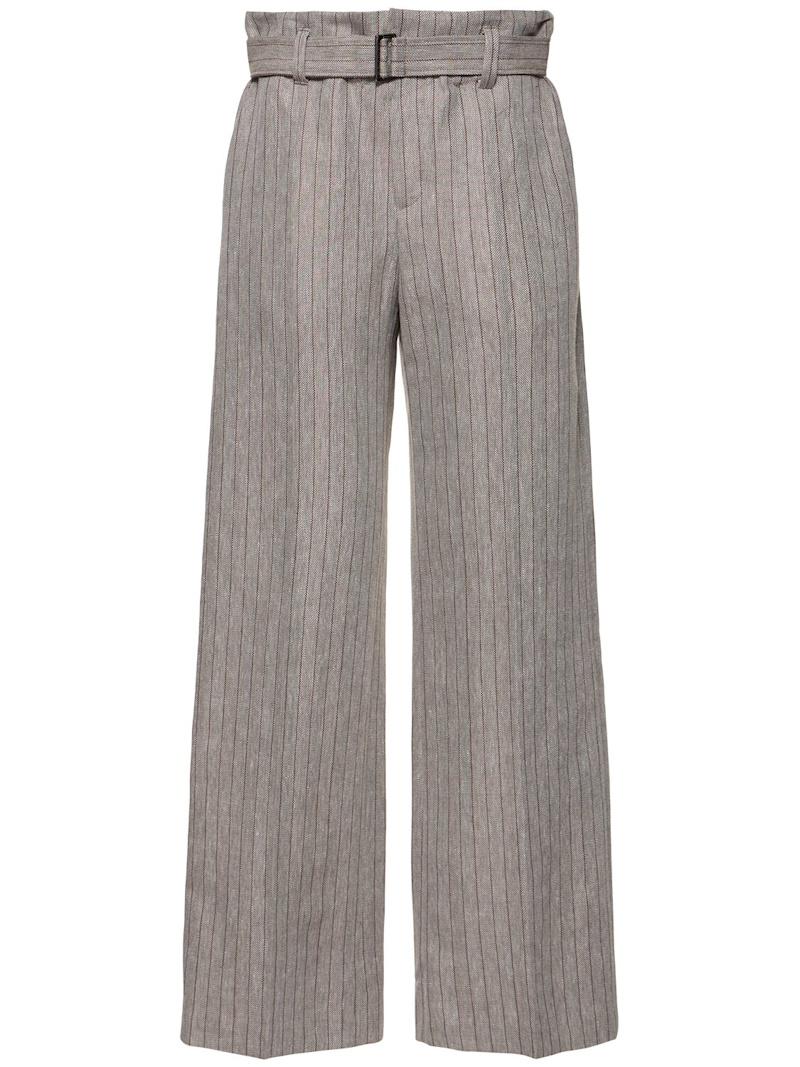 亚麻混纺直筒裤 - 棕色/多色 - 女士 - Brunello Cucinelli - 隐藏式正面粘扣开合.