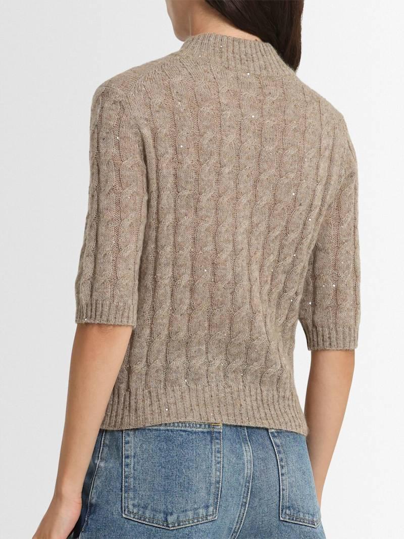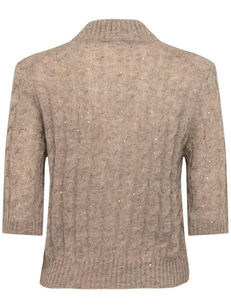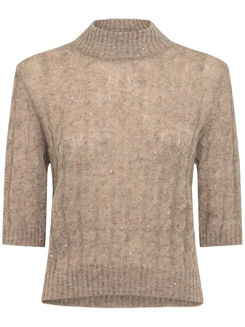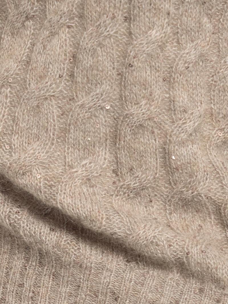 装饰马海毛混纺毛衣 - 米黄色 - 女士 - Brunello Cucinelli - 罗纹领口、袖口和下摆.