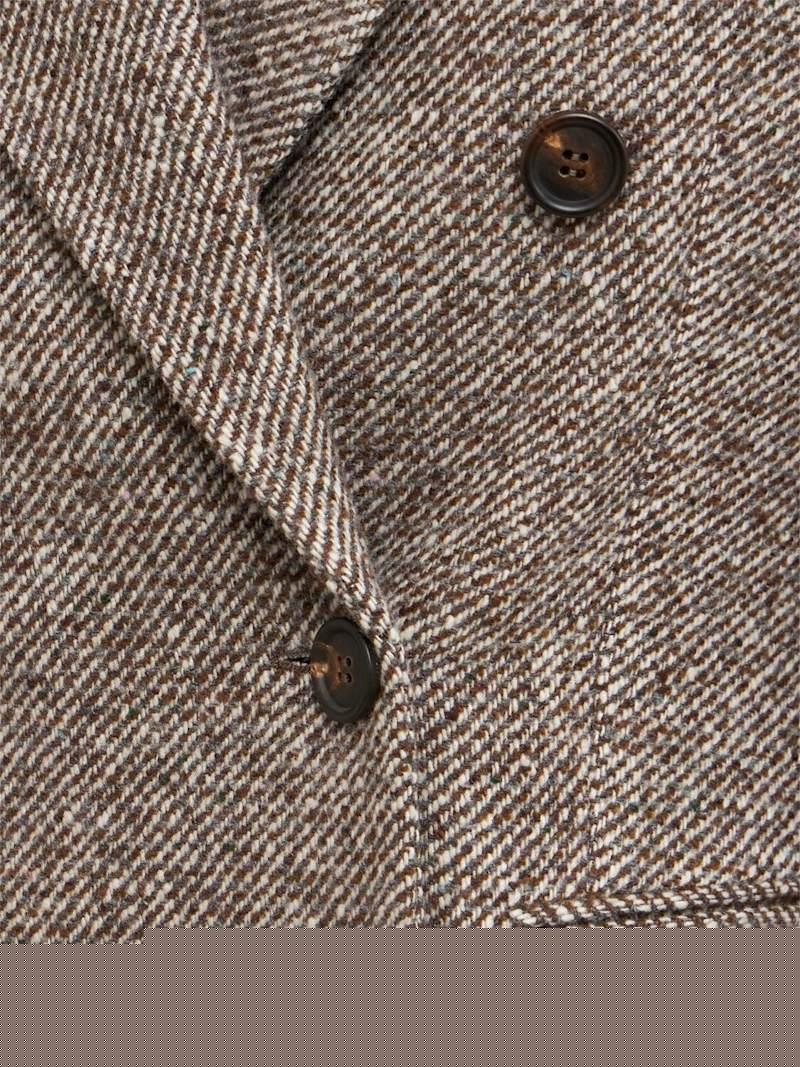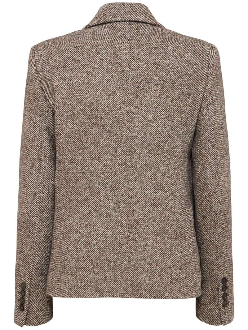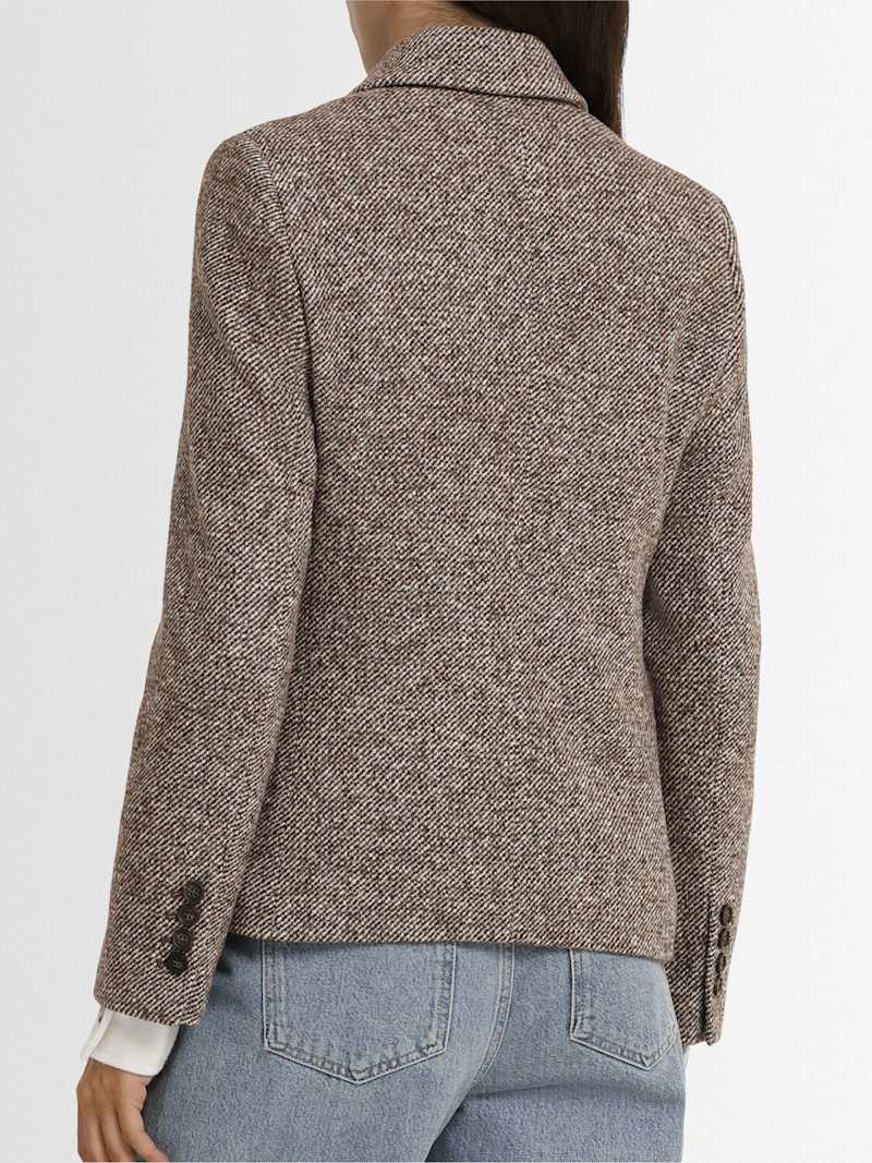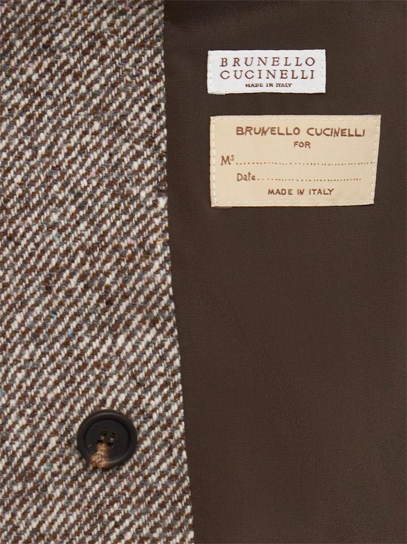 双排扣羊毛混纺西服夹克 - 棕色/多色 - 女士 - Brunello Cucinelli - 正面纽扣开合.
