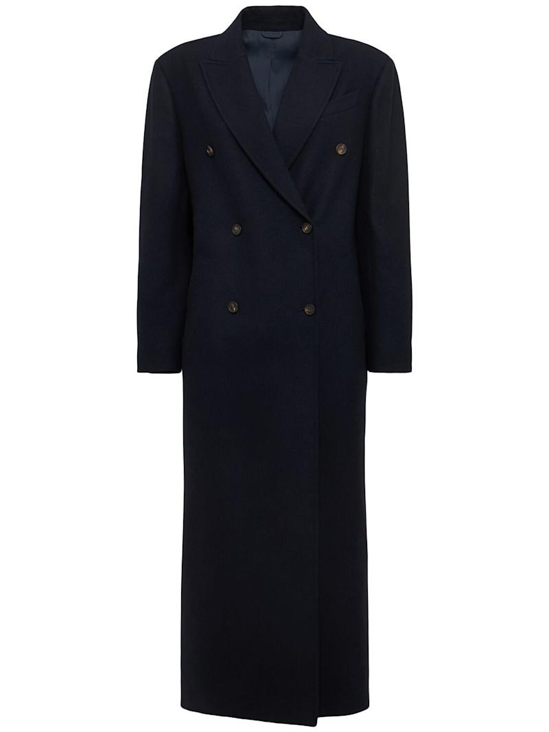 双层胸部羊毛混纺大衣 - 海军蓝 - 女士 - Brunello Cucinelli - 正面纽扣开合.