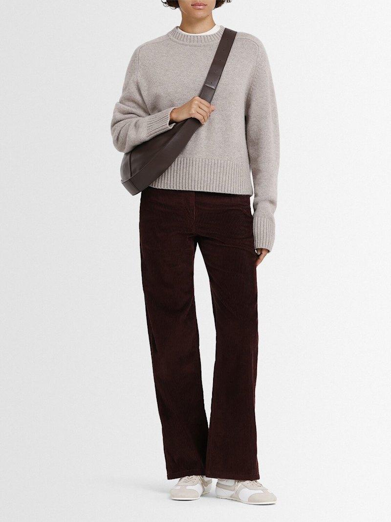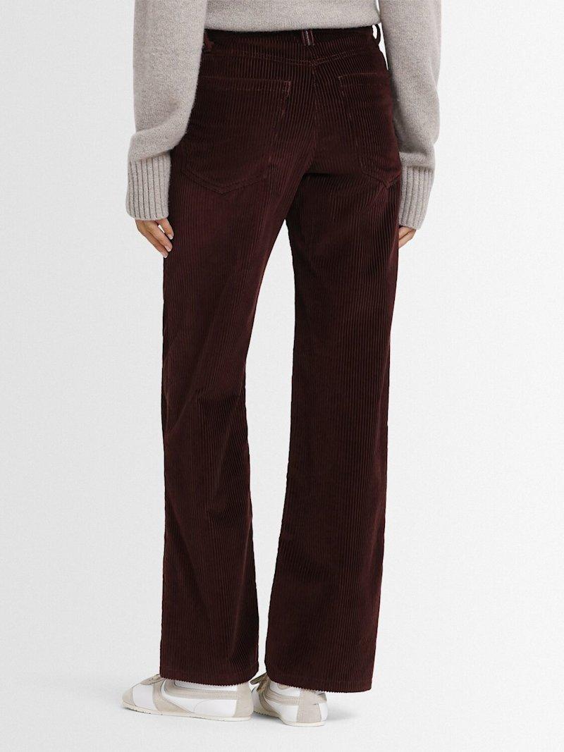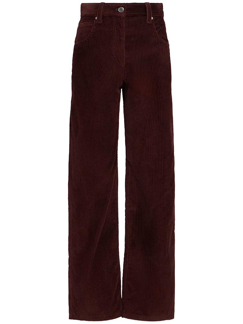 灯芯绒直筒裤 - 深紫红色 - 女士 - Brunello Cucinelli - 正面纽扣和隐藏式拉链开合.