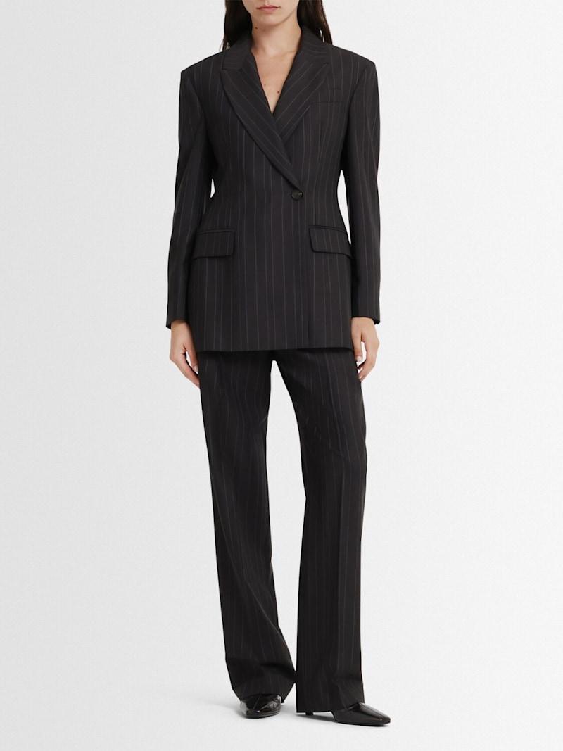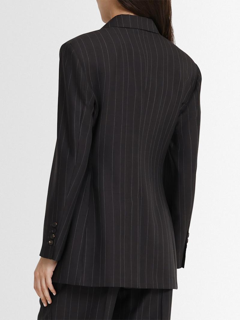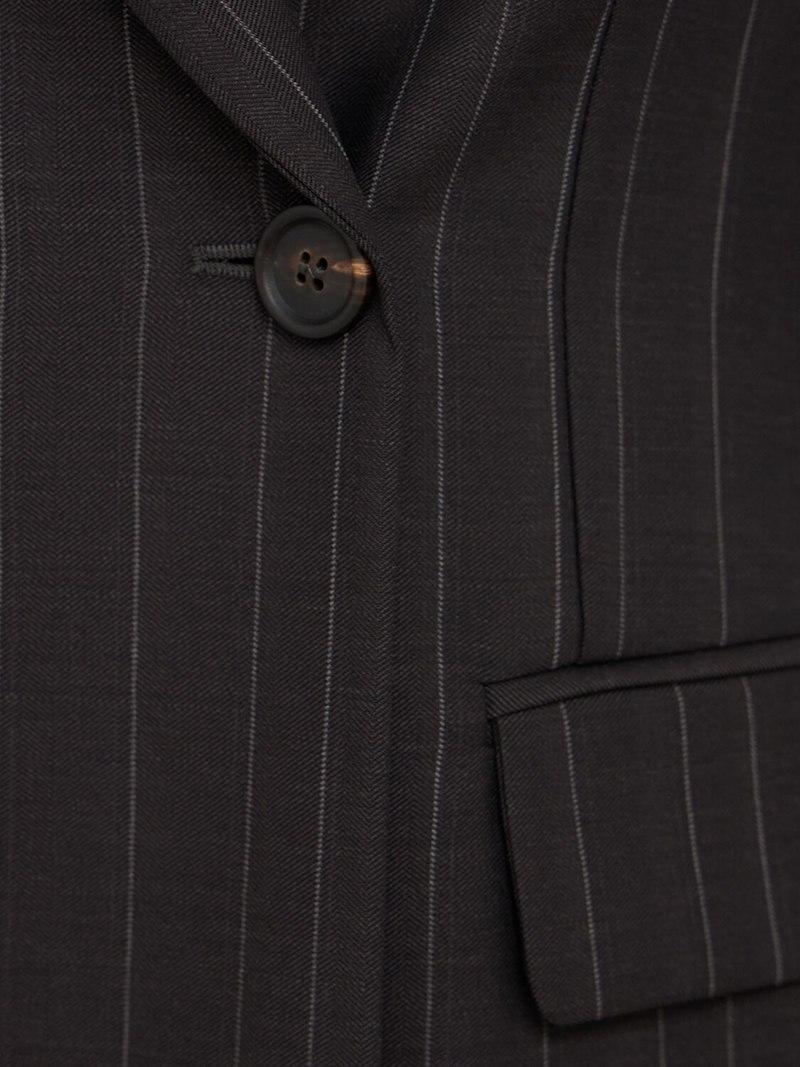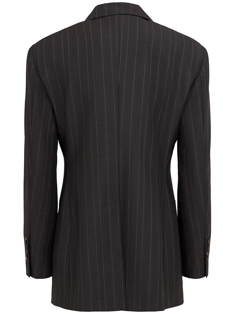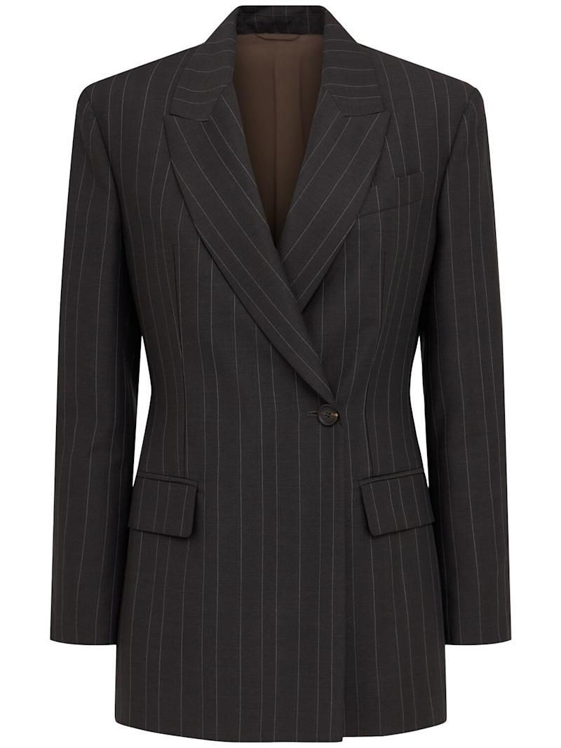 条纹羊毛西服夹克 - Chocolate/White - 女士 - Brunello Cucinelli - 正面纽扣开合.