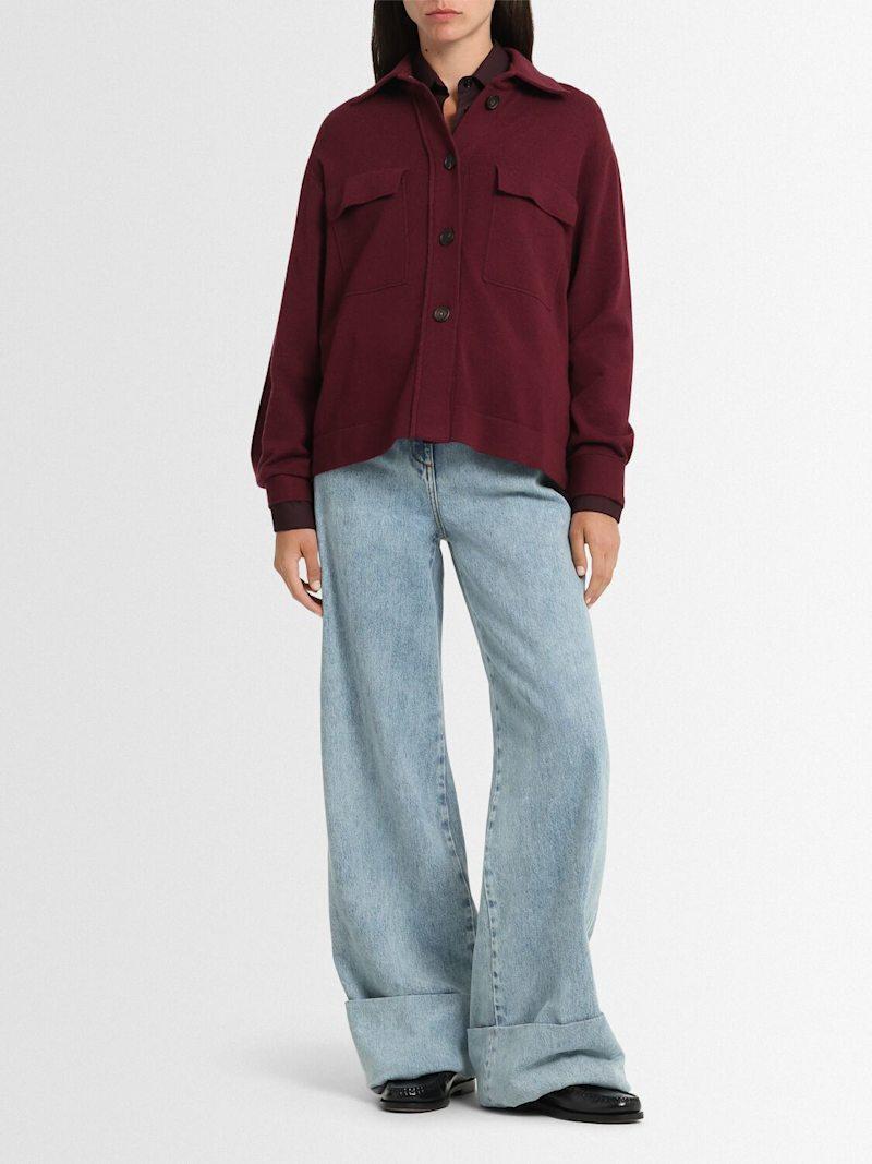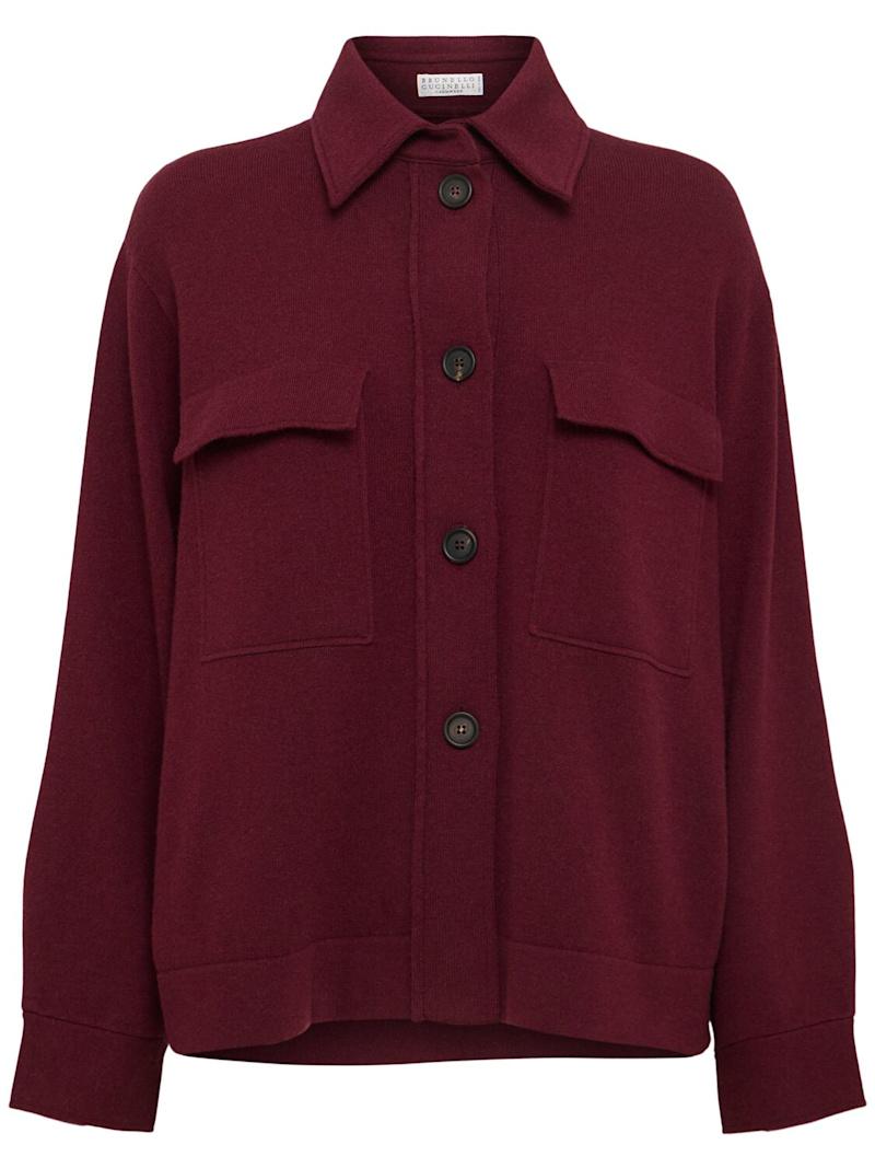 羊毛混纺开衫 - 紫红色 - 女士 - Brunello Cucinelli - 正面纽扣开合.