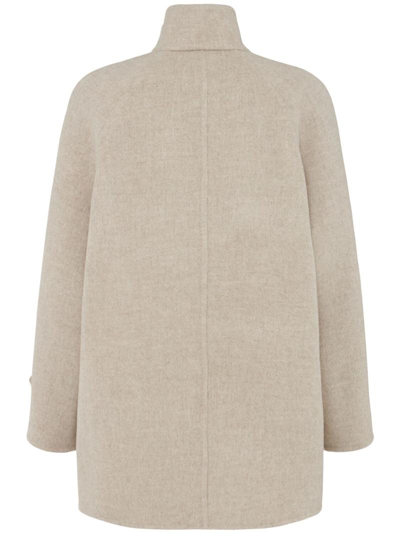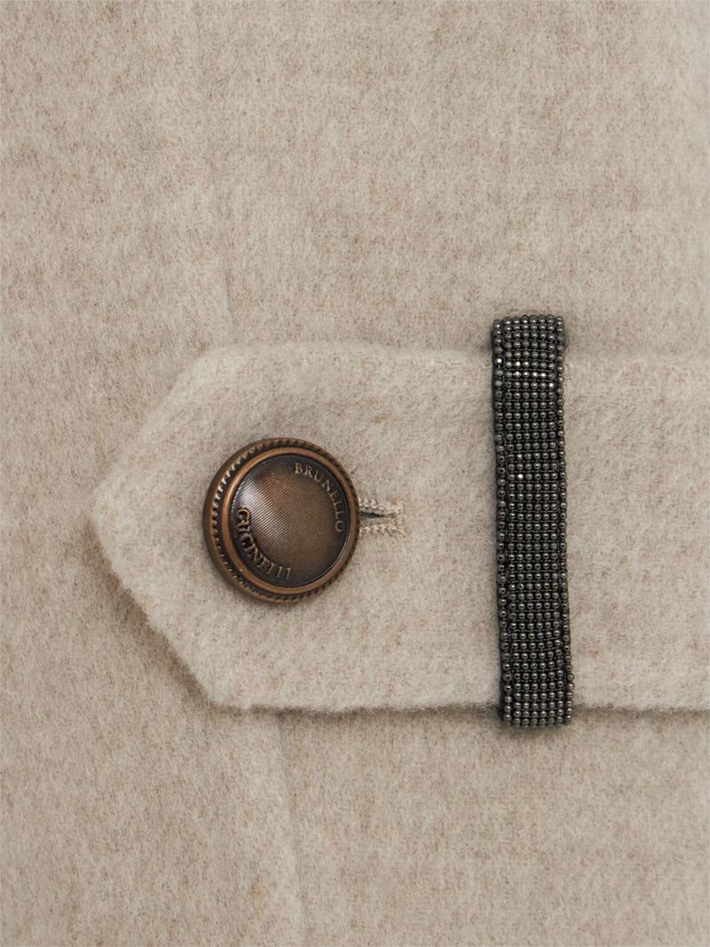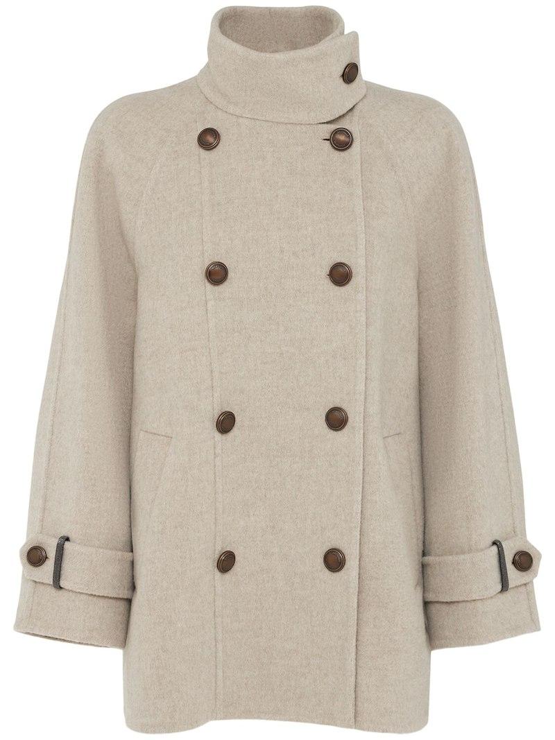双排扣羊毛混纺短款大衣 - 米黄色 - 女士 - Brunello Cucinelli - 正面纽扣开合.
