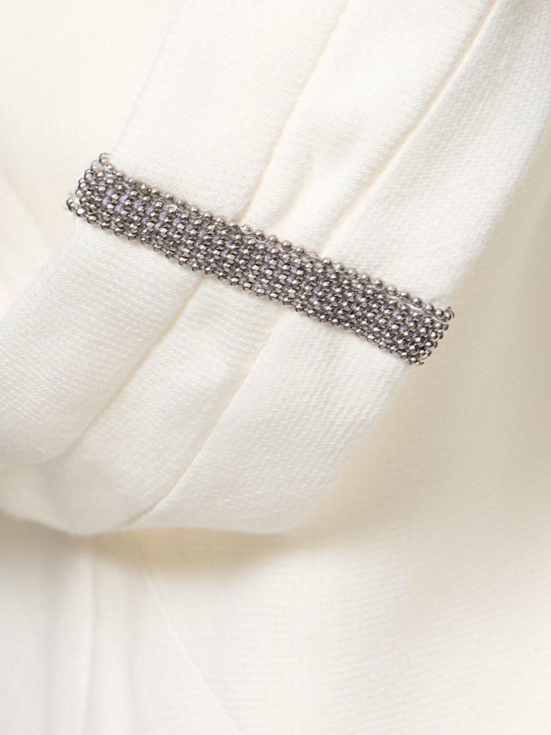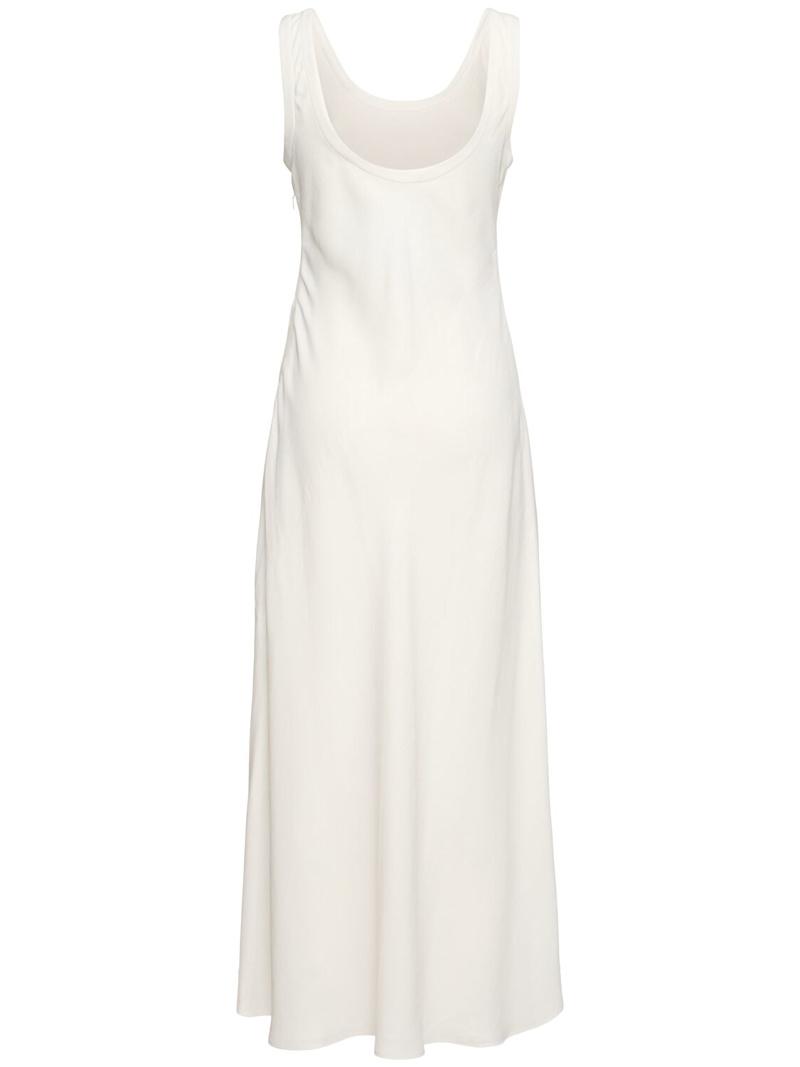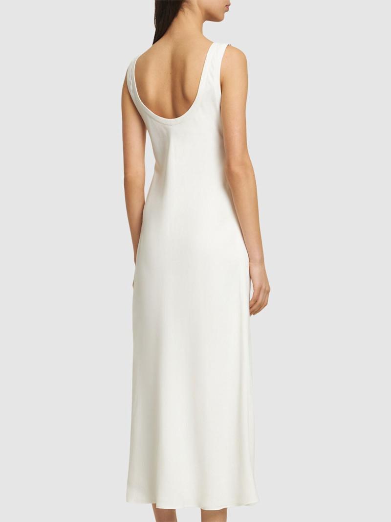 光滑亚麻混纺斜纹长款连衣裙 - 象牙色 - 女士 - Brunello Cucinelli - 侧面隐形拉链开合