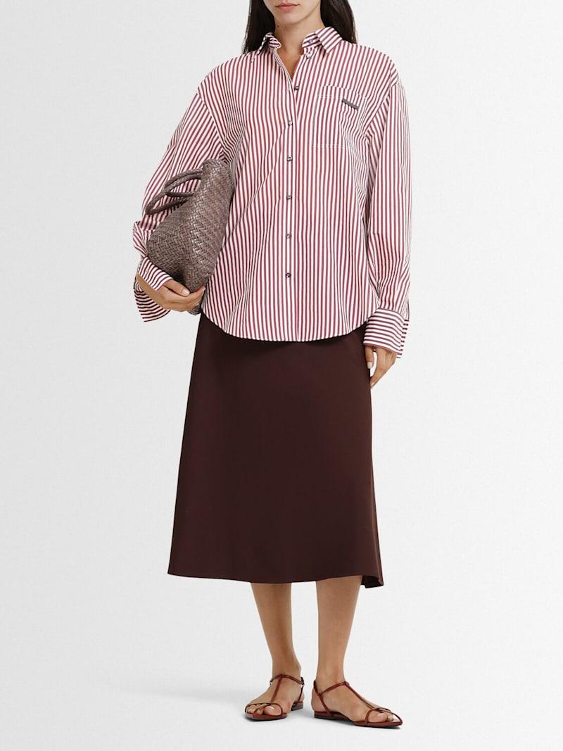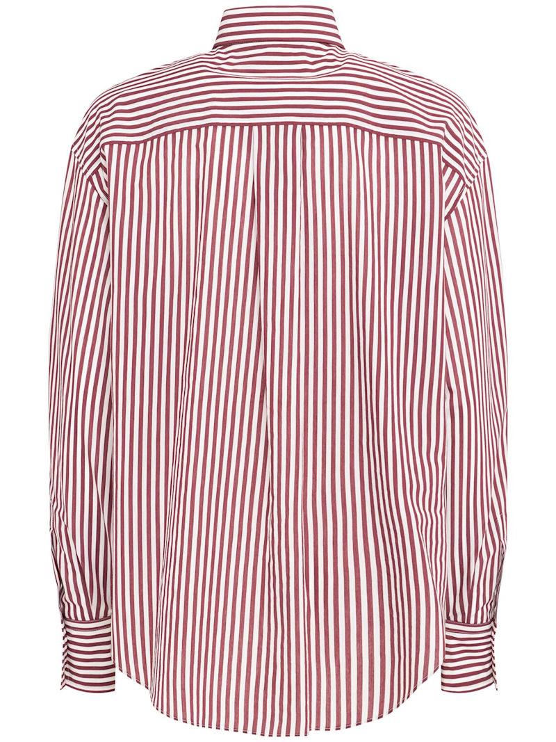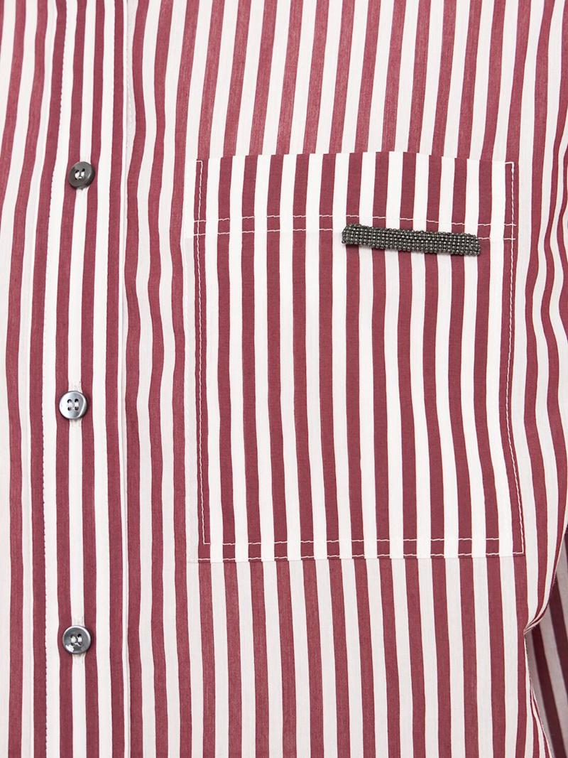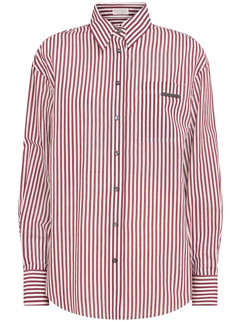 条纹衬衫 - 酒红色/白色 - 女士 - Brunello Cucinelli - 正面纽扣开合.