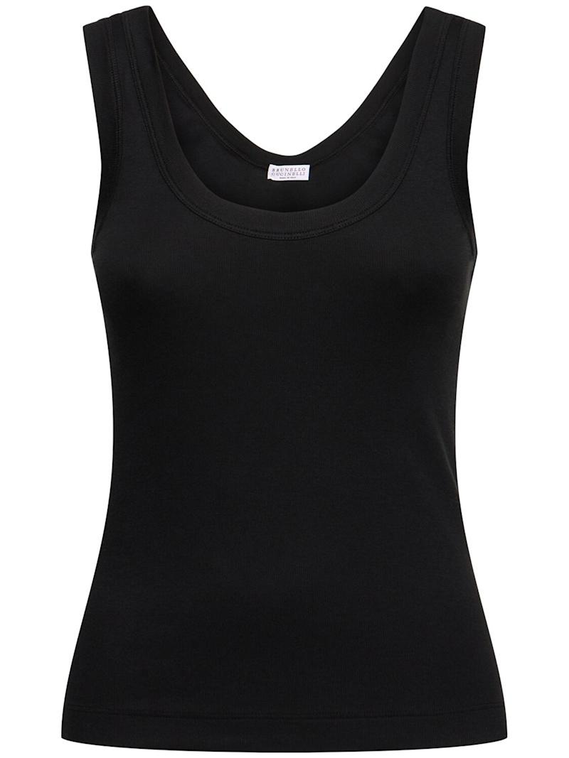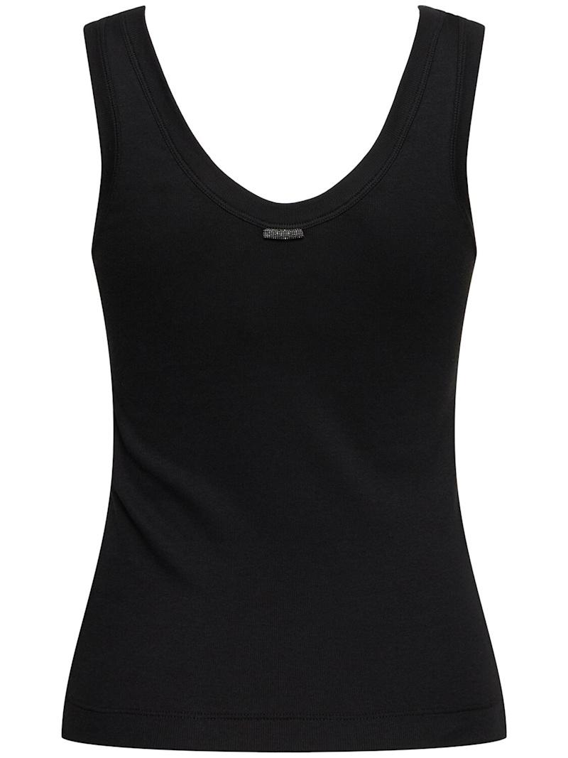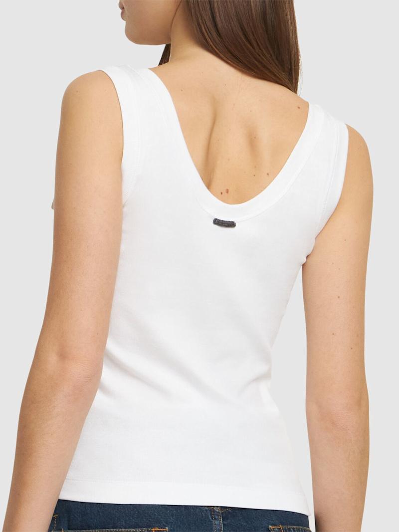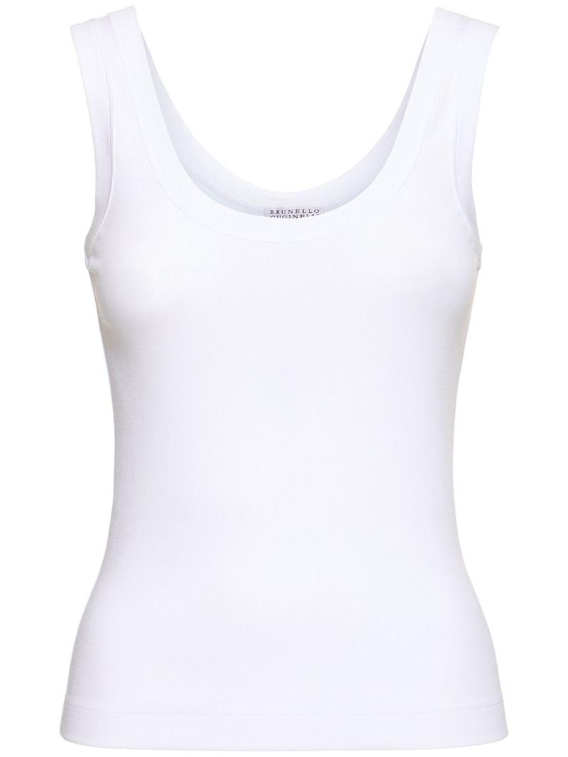 罗纹平纹针织背心 - 白色 - 女士 - Brunello Cucinelli - 罗纹衣领和开袖
