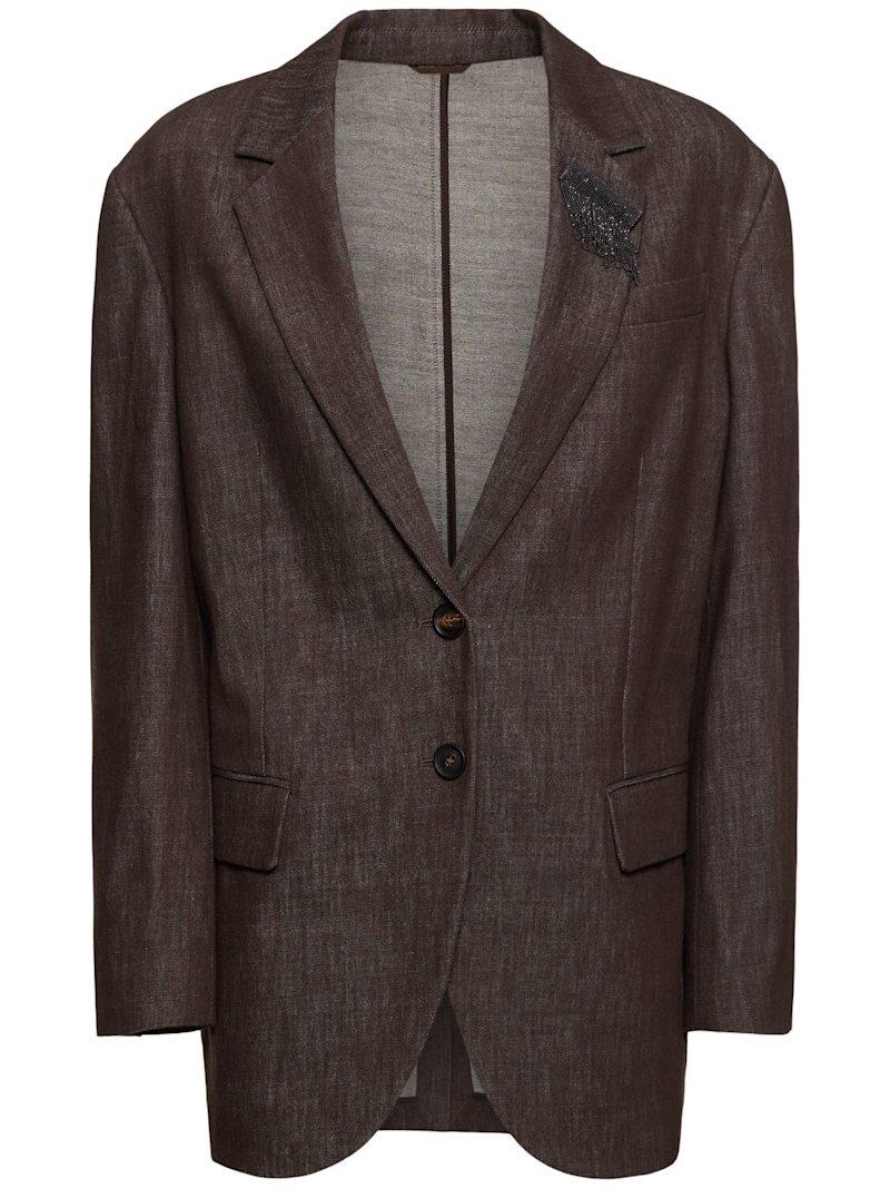 棉质西服夹克 - 棕色 - 女士 - Brunello Cucinelli - 正面纽扣开合.