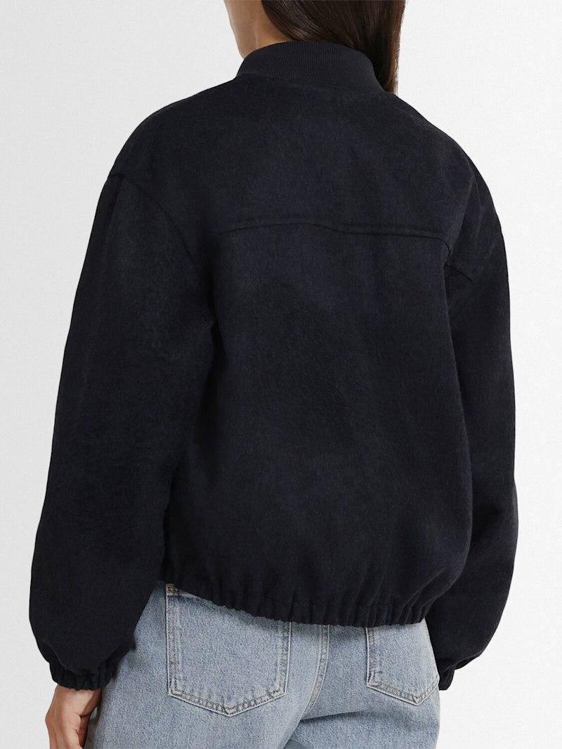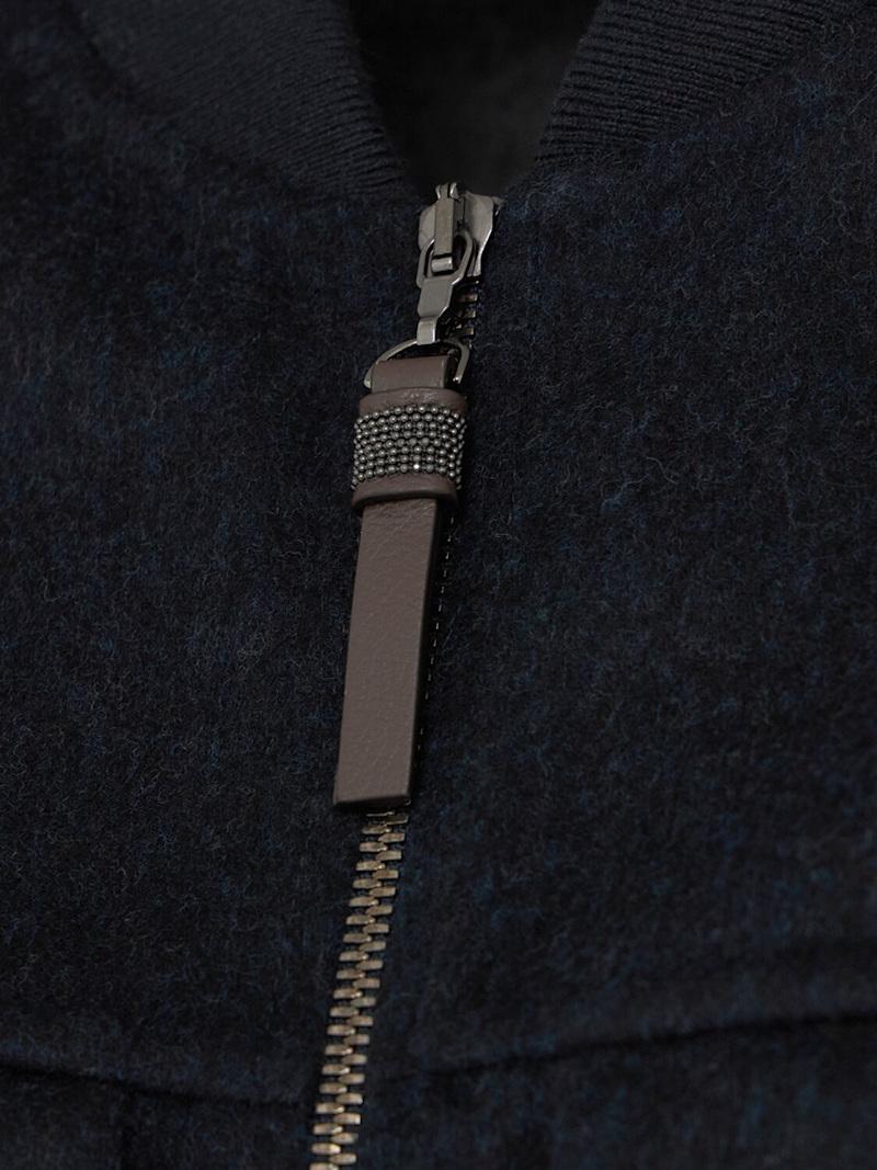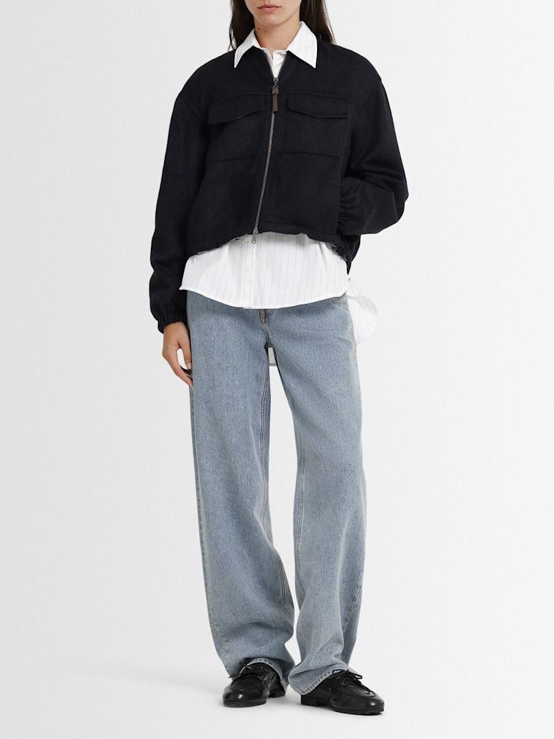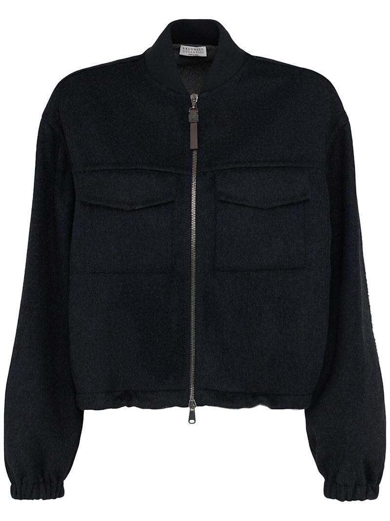 无领羊绒短款夹克 - 海军蓝 - 女士 - Brunello Cucinelli - 正面拉链开合.