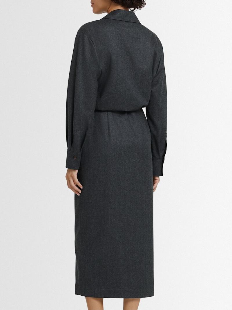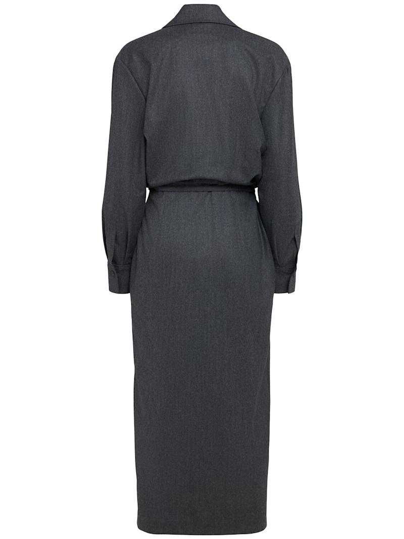 系腰带针织迷笛连衣裙 - 深灰色 - 女士 - Brunello Cucinelli - 围裹式绑带开合