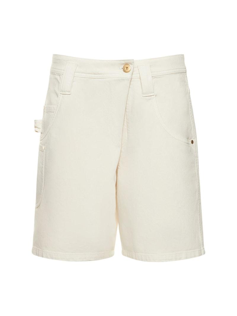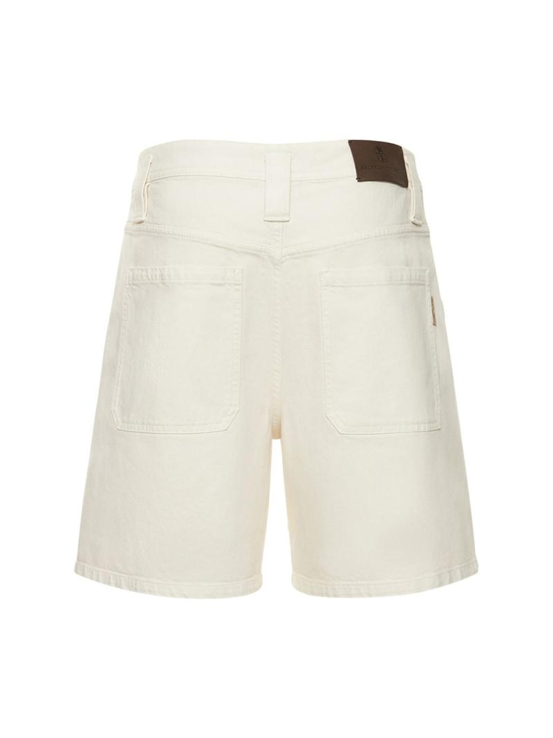 低腰棉质牛仔短裤 - 淡褐色 - 女士 - Brunello Cucinelli - 正面隐藏式纽扣开合.