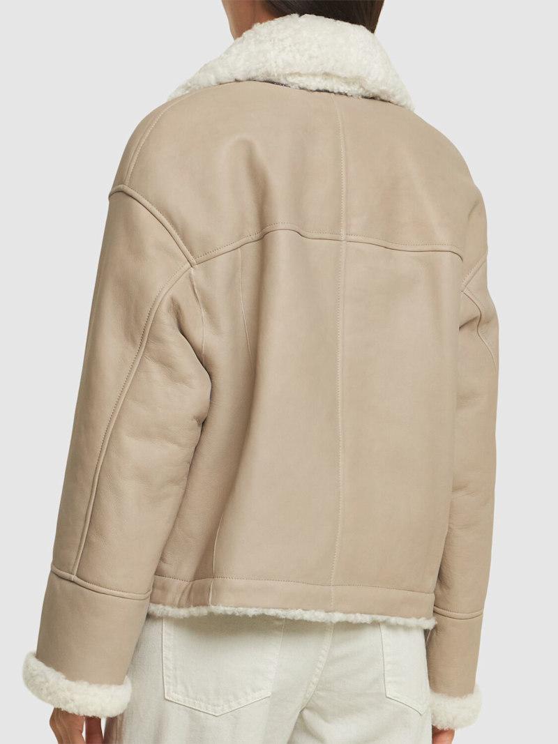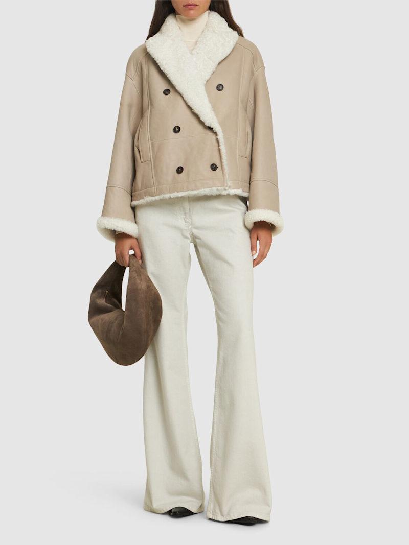 两面穿麂皮剪羊毛夹克 - 米黄色/白色 - 女士 - Brunello Cucinelli - 正面纽扣开合.