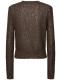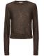 金银丝亚麻混纺圆领毛衣 - 棕色 - 女士 - Brunello Cucinelli - 罗纹领口、袖口和下摆