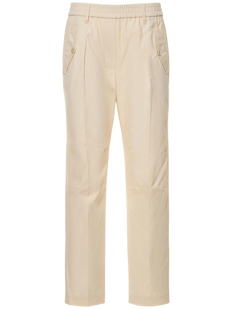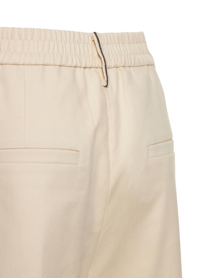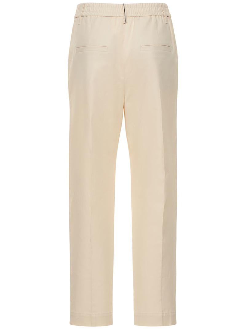 棉质斜纹弹力直筒裤 - 象牙色 - 女士 - Brunello Cucinelli - 弹性腰头.
