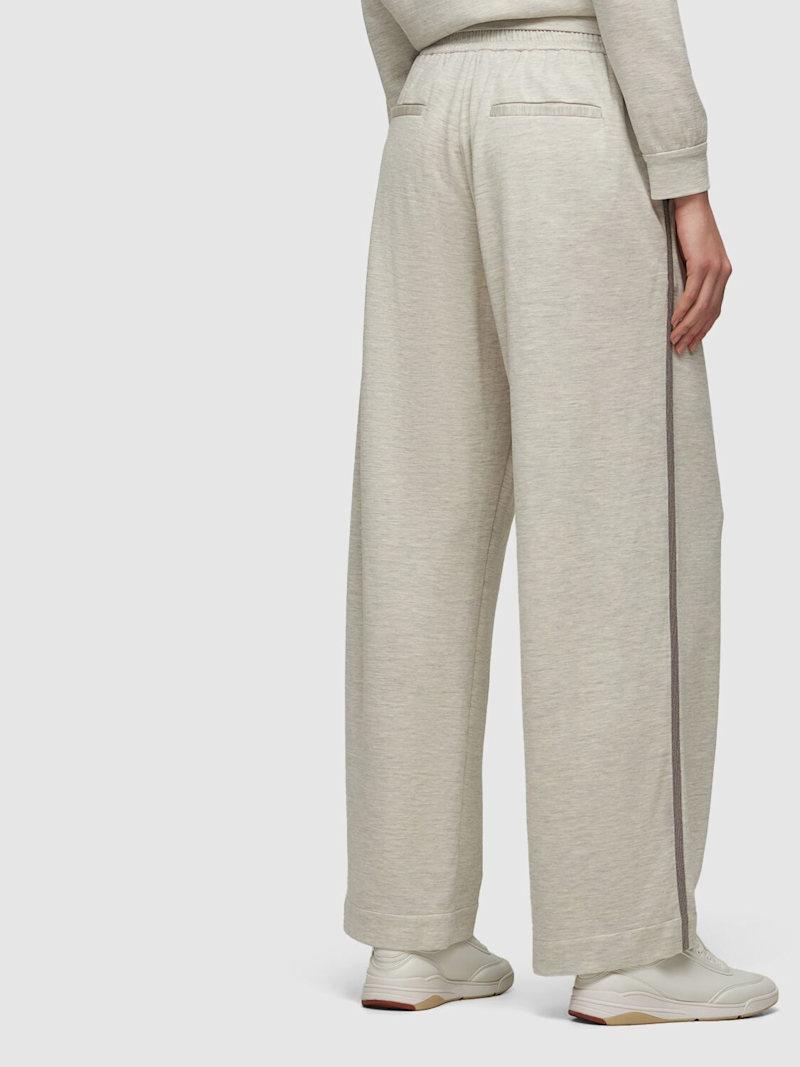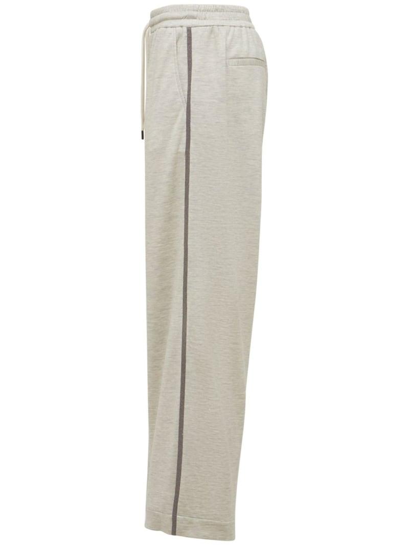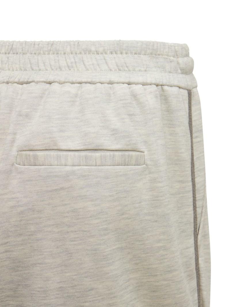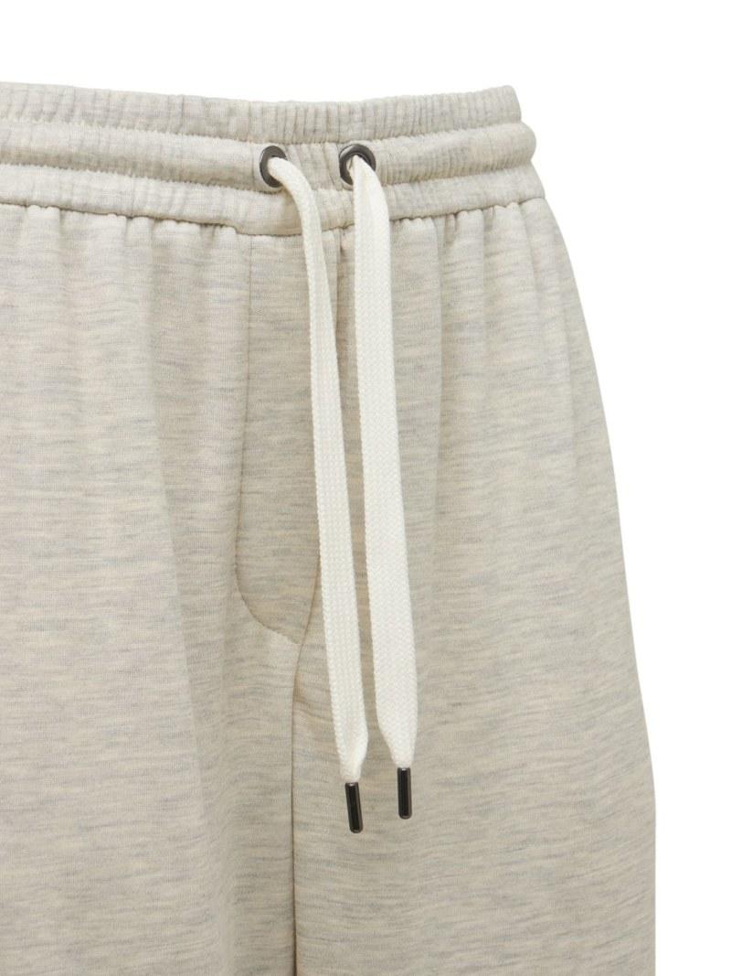棉&真丝平纹针织运动裤 - 浅灰色 - 女士 - Brunello Cucinelli - 抽绳松紧腰头.