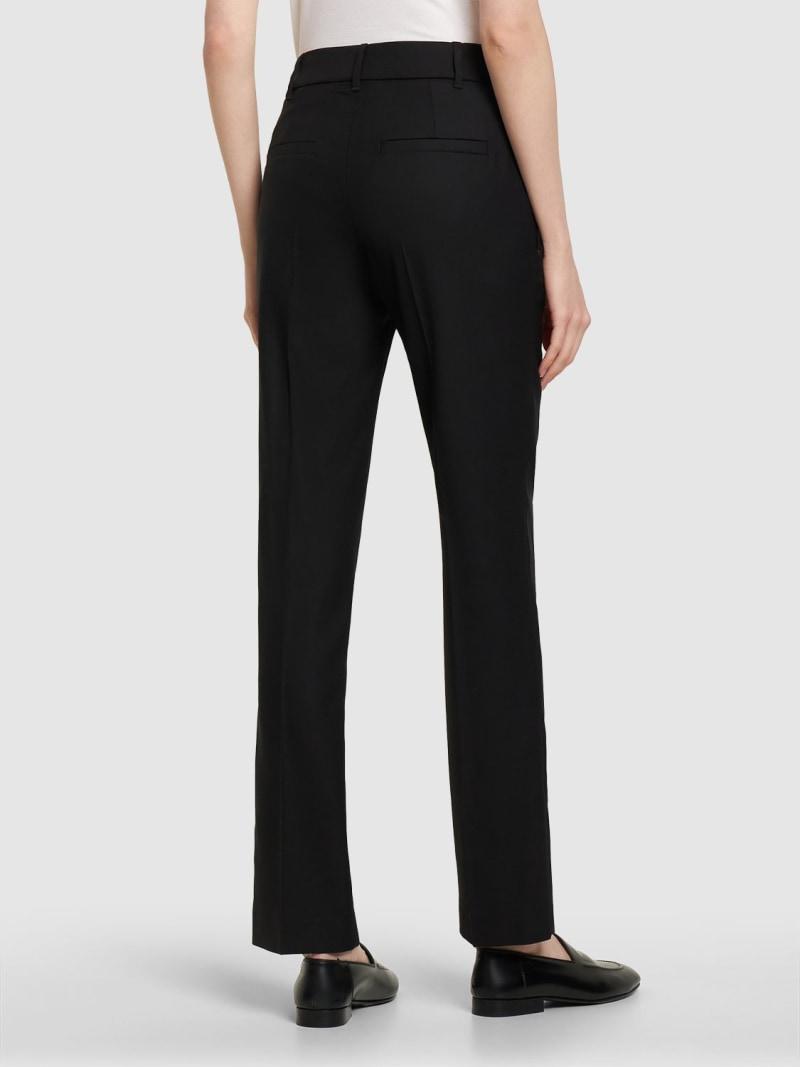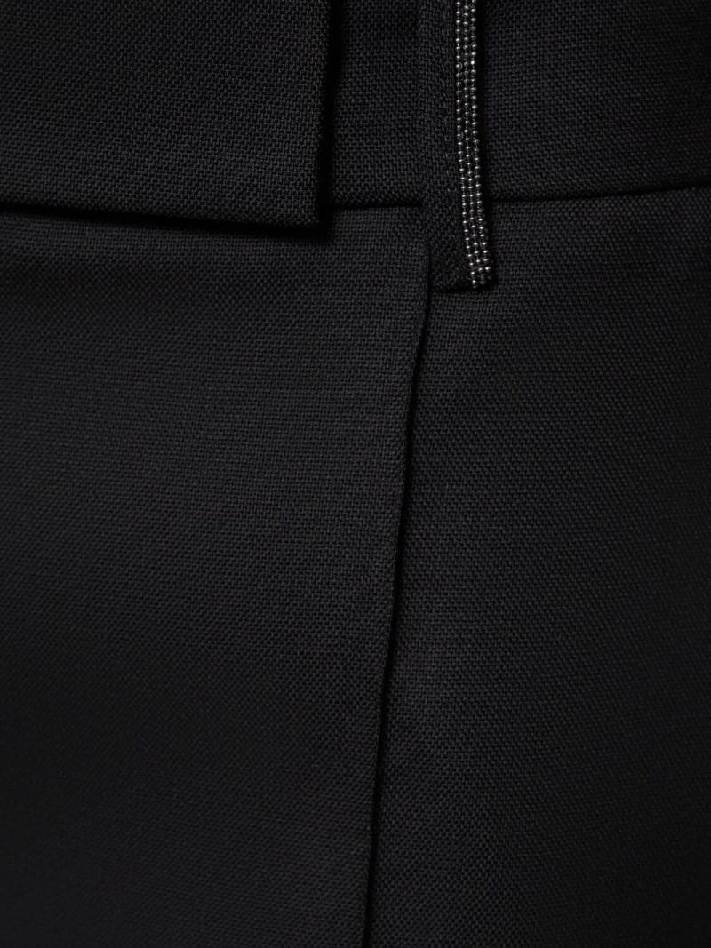 羊毛绉纱直筒裤 - 黑色 - 女士 - Brunello Cucinelli - 正面隐藏式钩扣、纽扣和拉链开合.