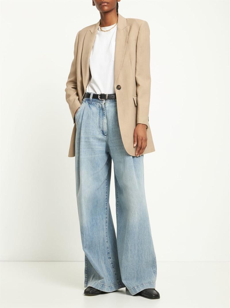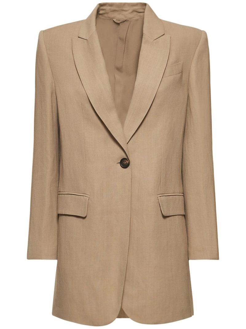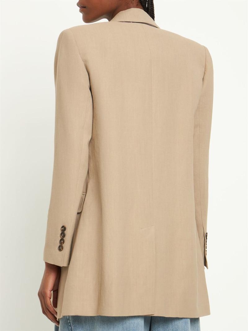 粘胶纤维&亚麻单排扣西服夹克 - 米黄色 - 女士 - Brunello Cucinelli - 正面纽扣开合.