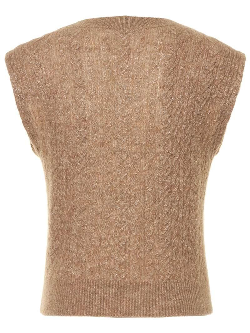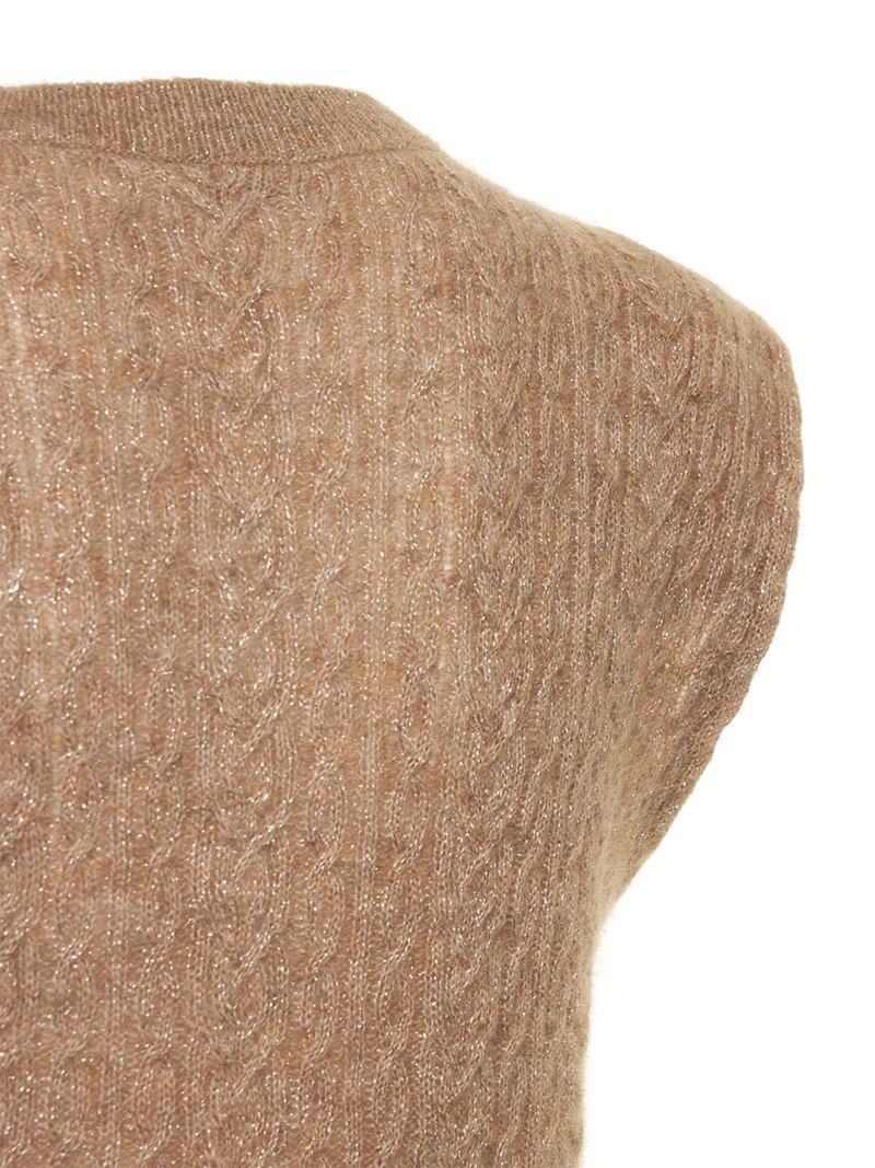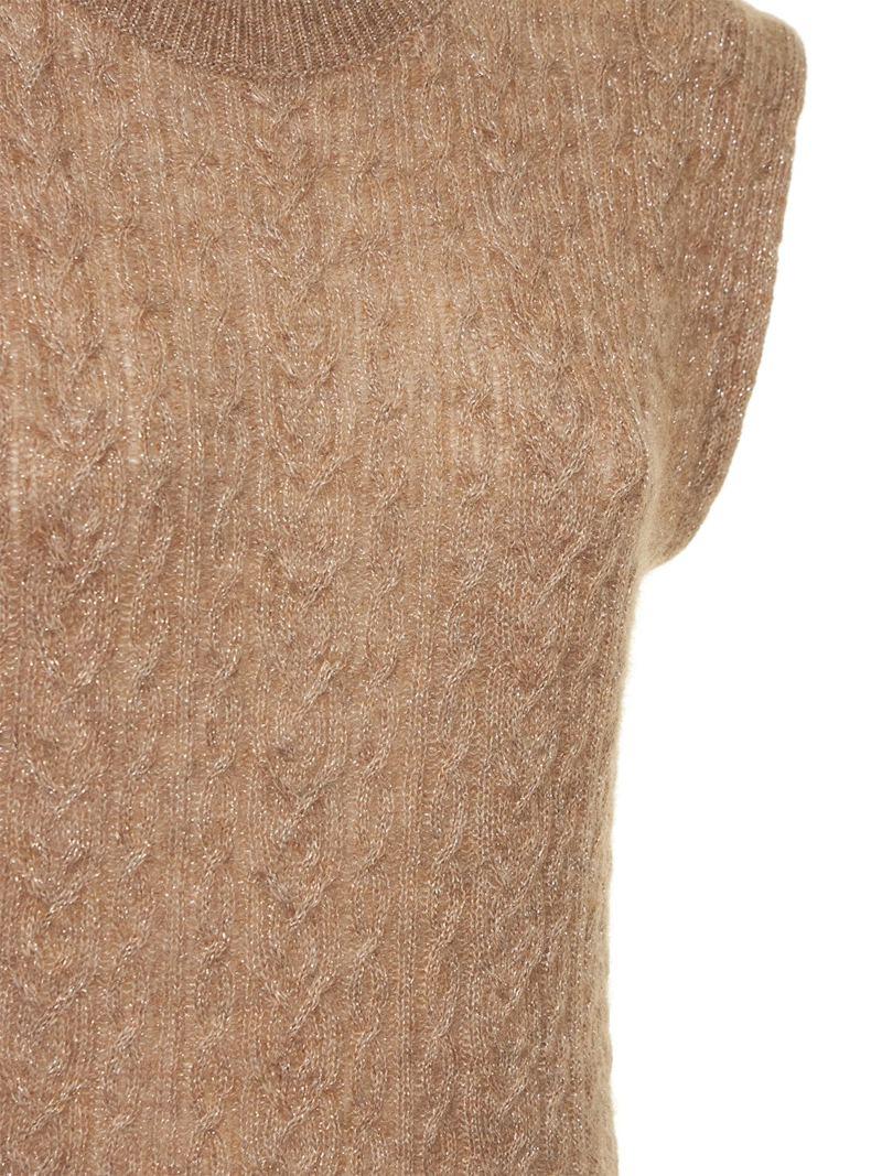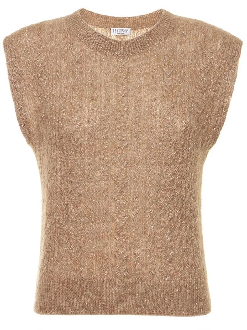 扭绳针织金银丝&马海毛混纺背心 - 米黄色 - 女士 - Brunello Cucinelli - 棱纹领口,袖口和下摆