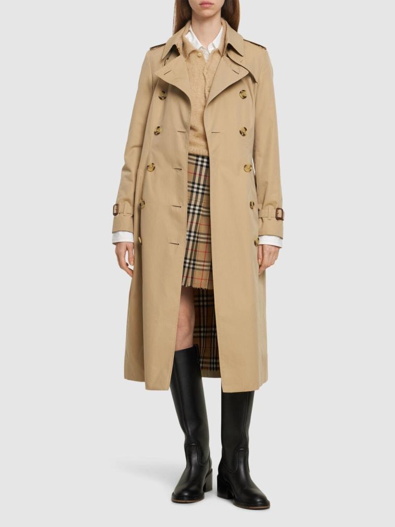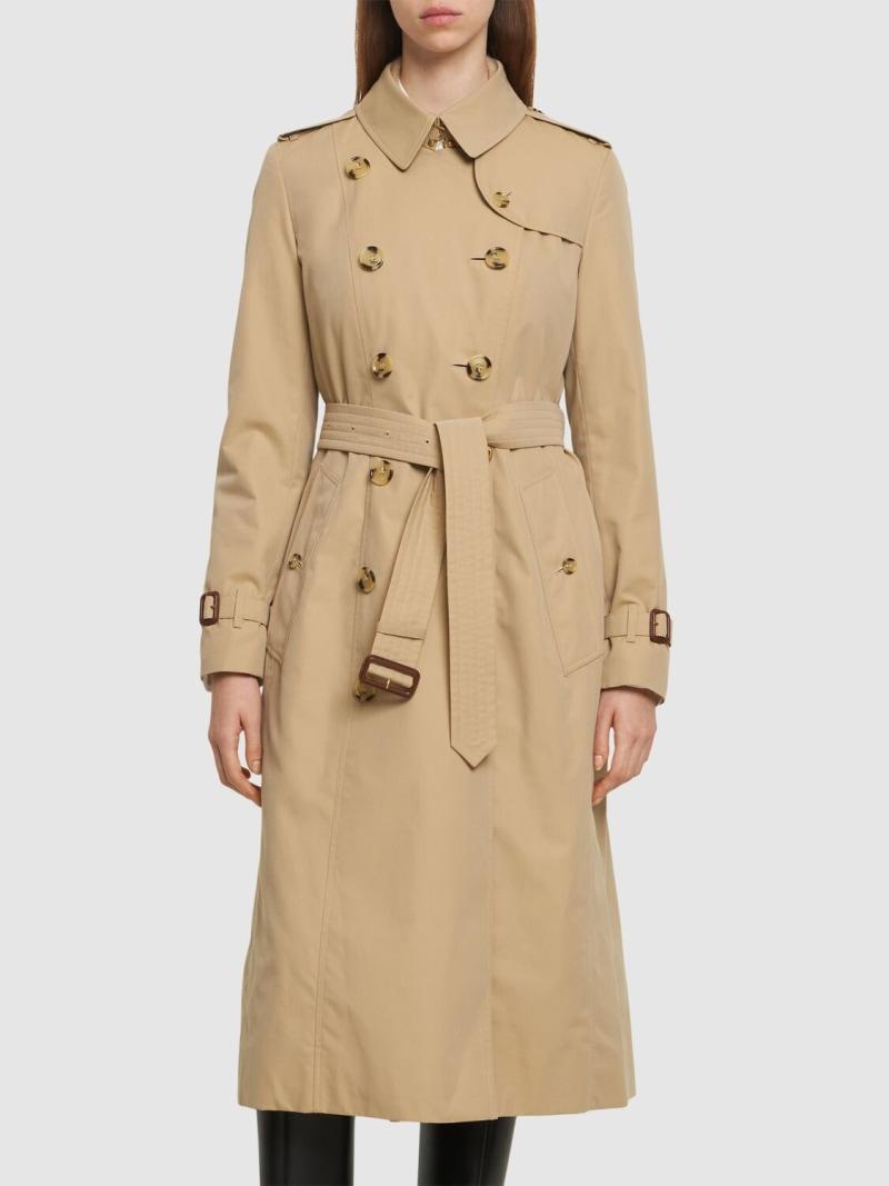 Chelsea长款复古风衣 - 米黄色 - 女士 - Burberry - 正面双排扣开合.