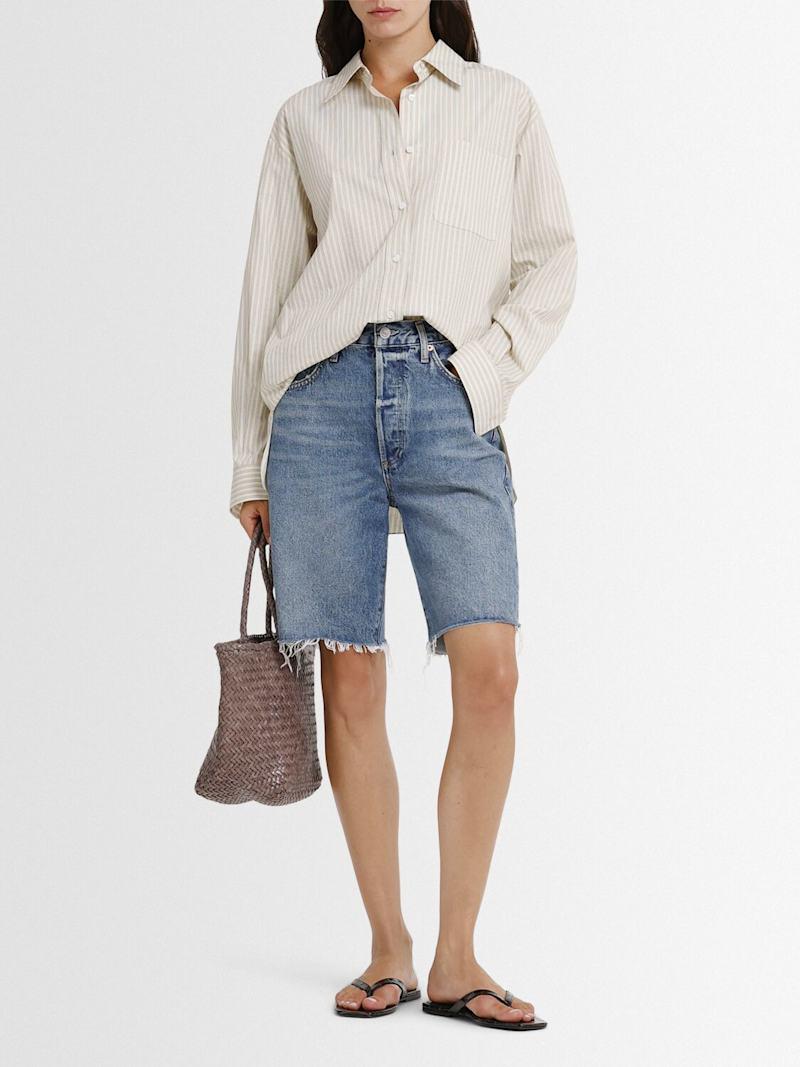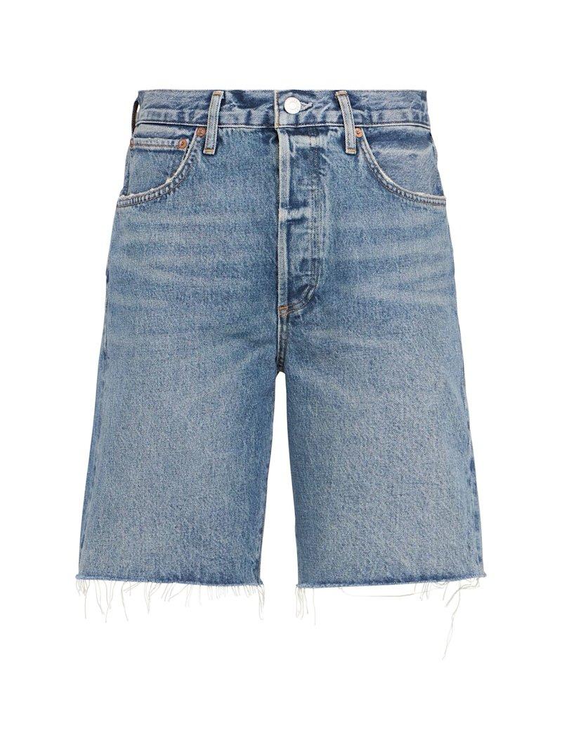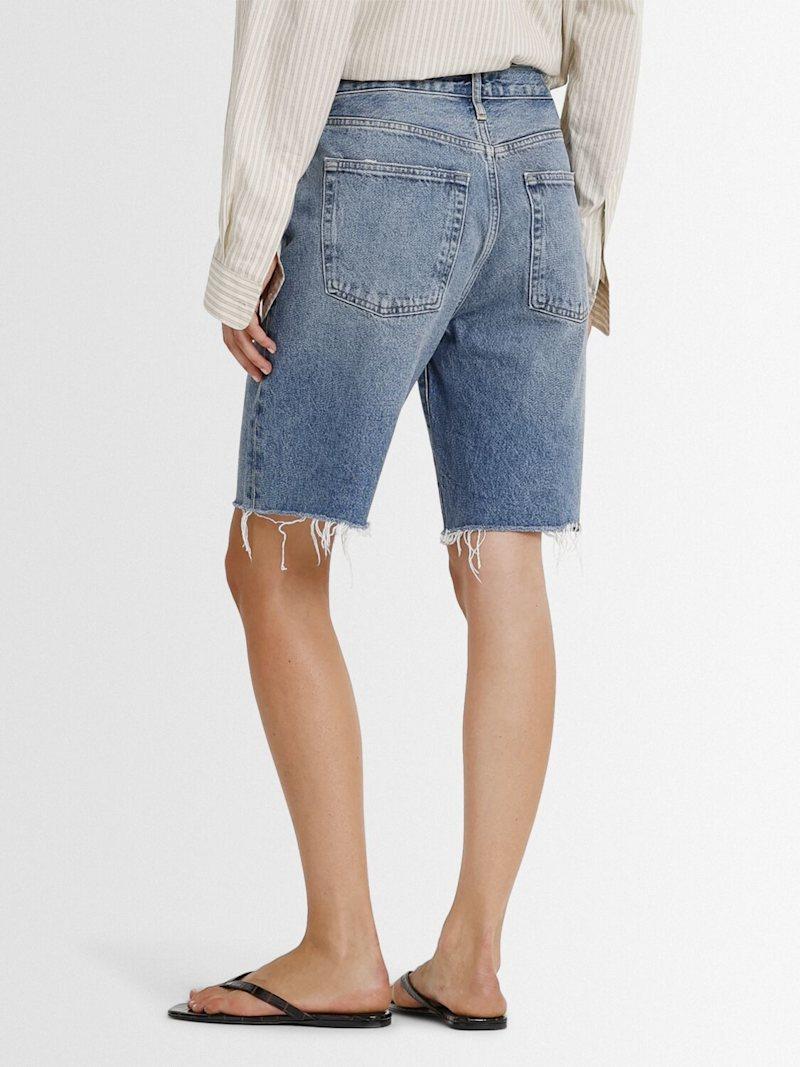 90's牛仔短裤 - 蓝色 - 女士 - Agolde - 正面纽扣和隐藏式拉链开合.