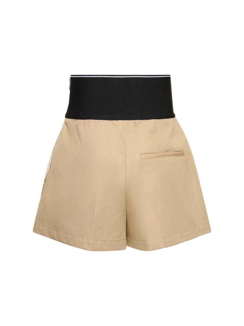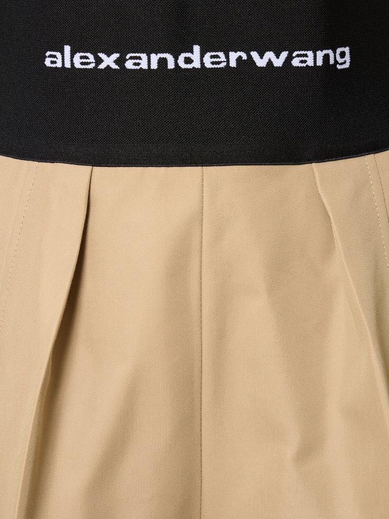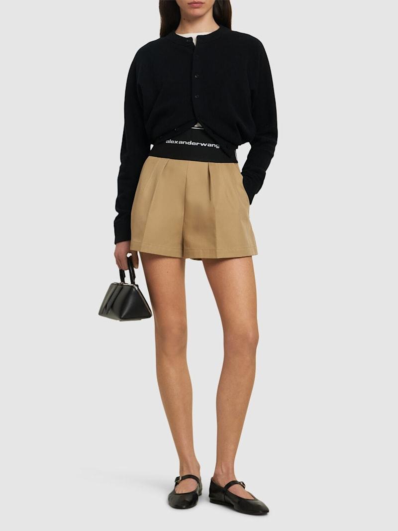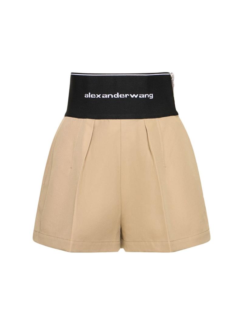 精裁棉&尼龙短裤 - 米黄色 - 女士 - Alexander Wang - Logo松紧腰头.