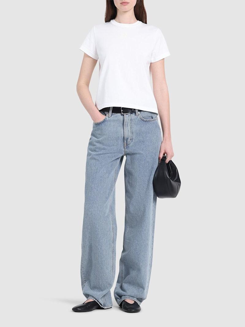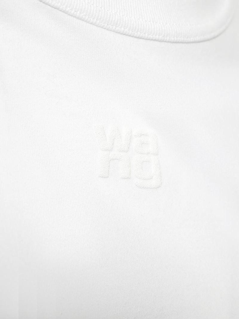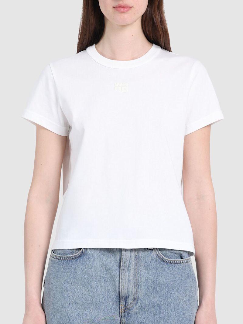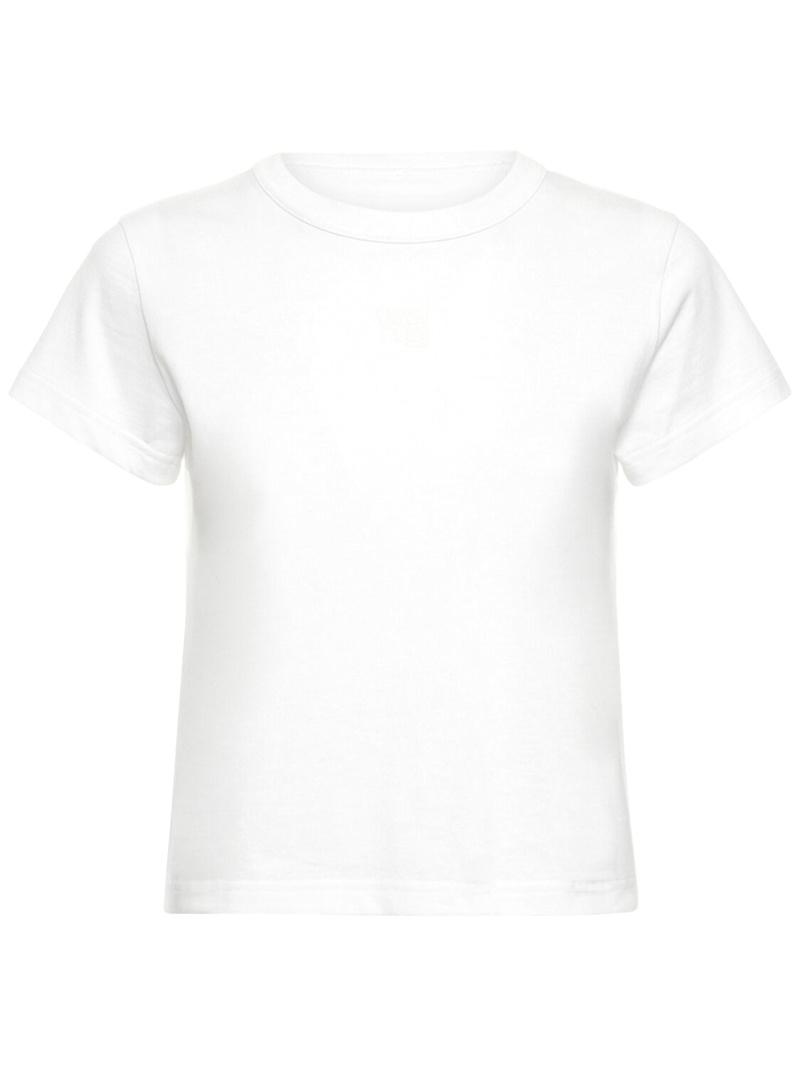 Essential棉质平纹针织T恤 - 白色 - 女士 - Alexander Wang - 正面logo细节.