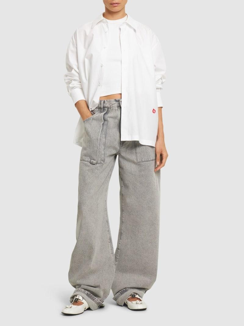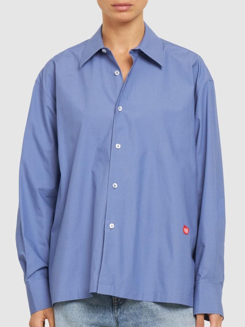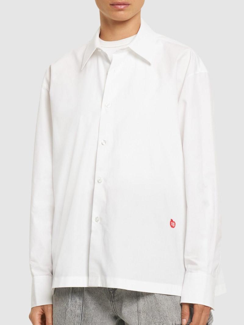 Logo纽扣开合棉质衬衫 - 白色 - 女士 - Alexander Wang - 正面纽扣开合.