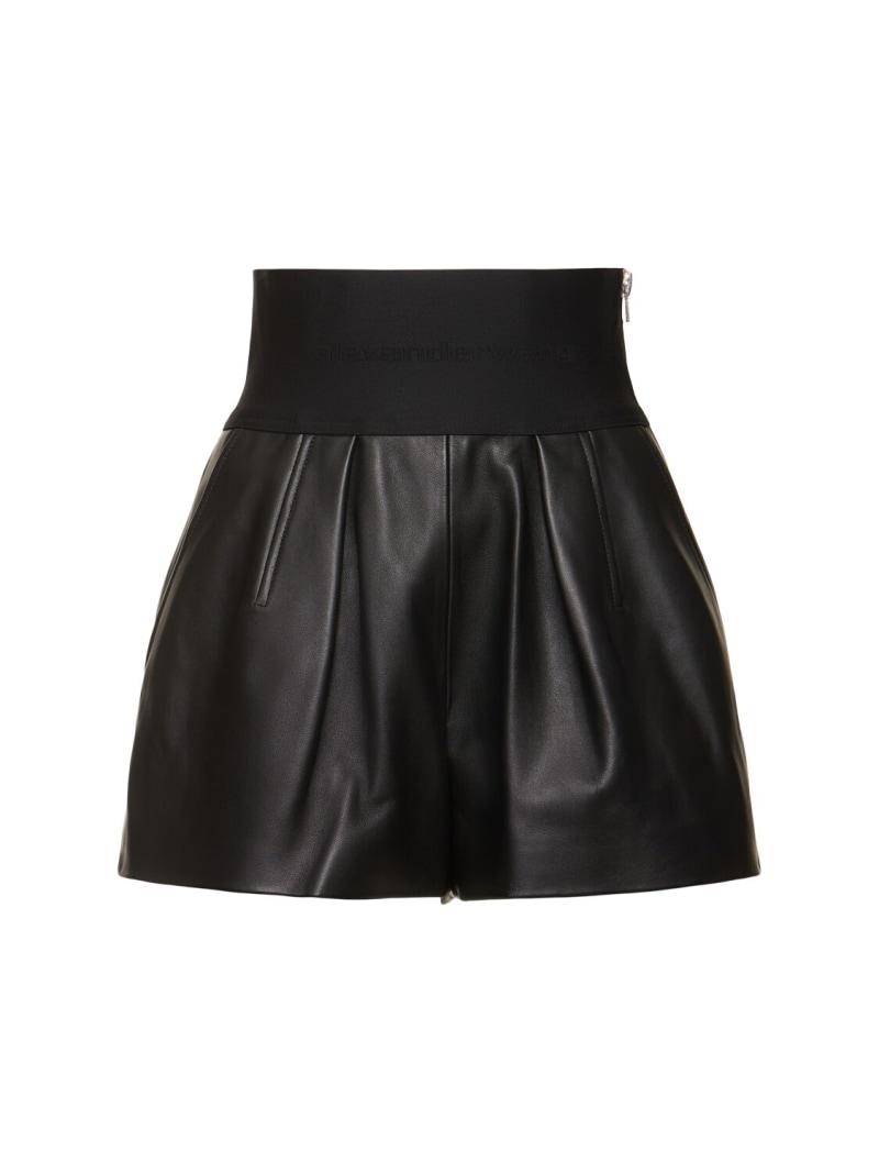 Safari皮革短裤 - 黑色 - 女士 - Alexander Wang - Logo松紧腰头.