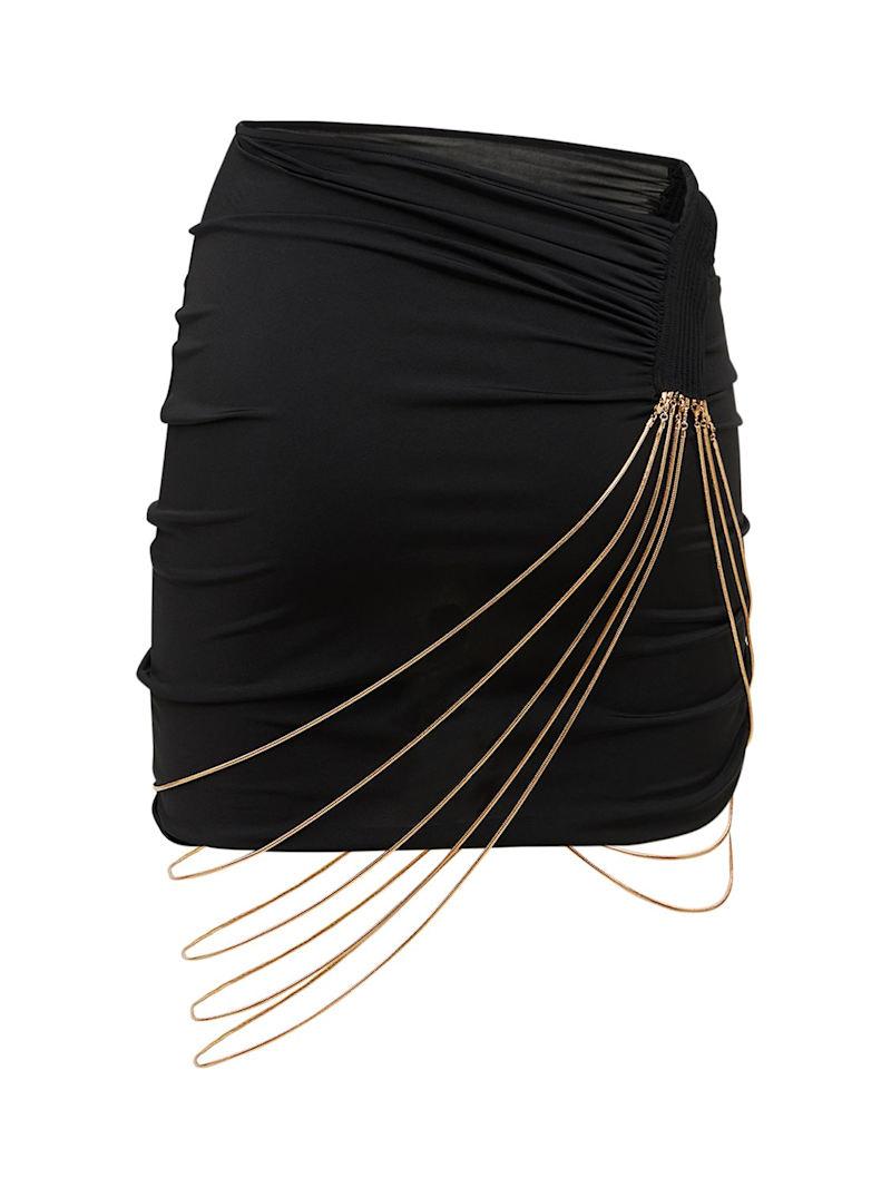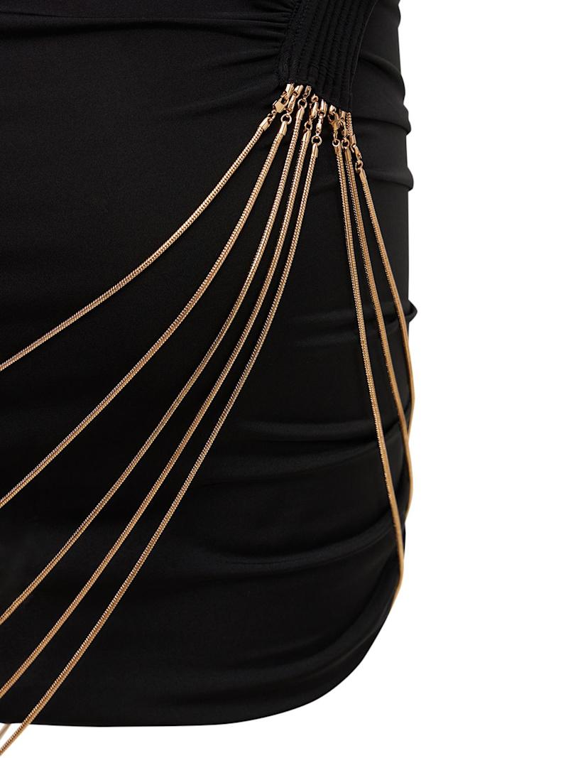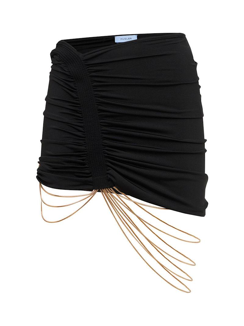 链条装饰环保平纹针织迷你短裙 - 黑色 - 女士 - MUGLER - 不可拆卸金属链条细节