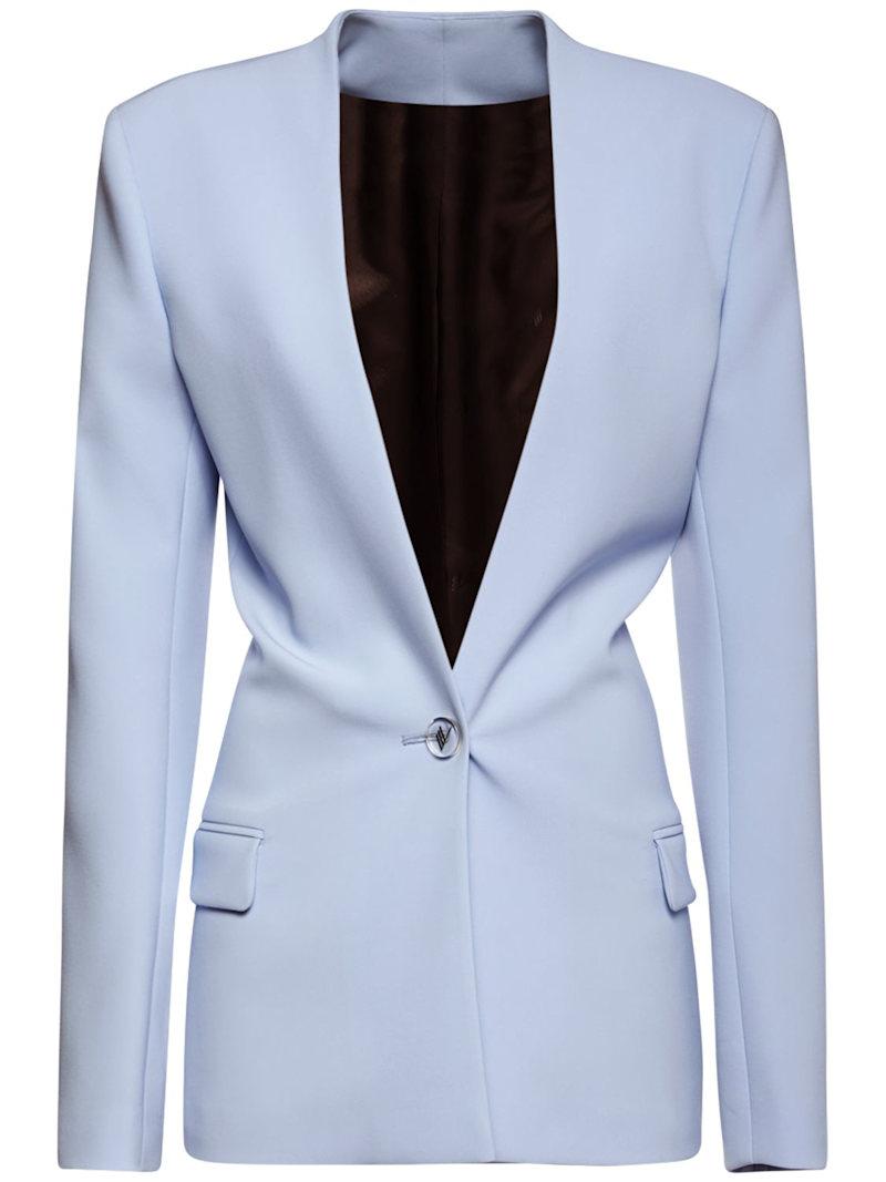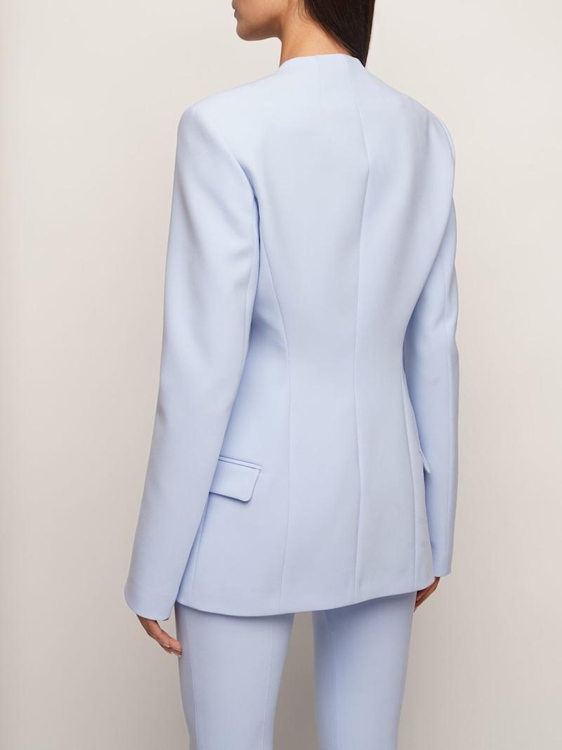 Thelma科技织物绉纱无领西服夹克 - 浅蓝色 - 女士 - The Attico - 正面纽扣开合.