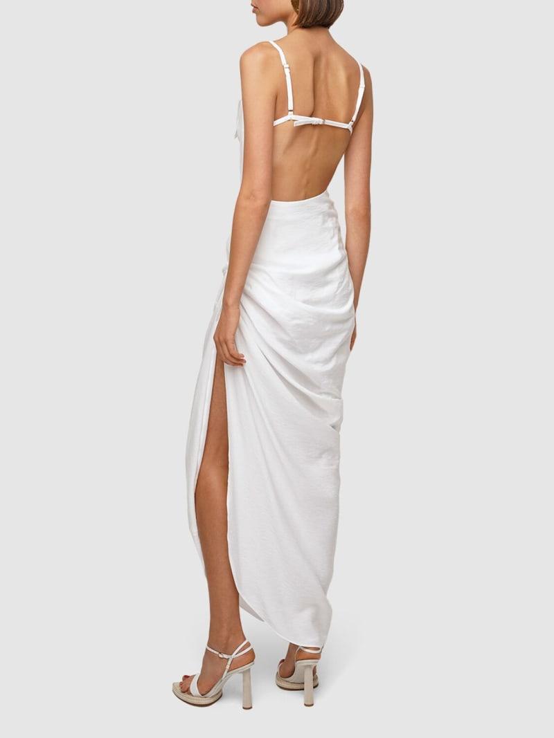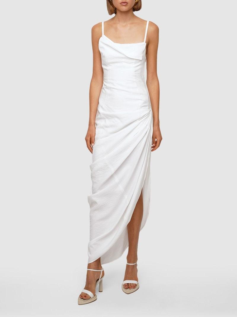 垂褶粘胶纤维混纺长款开叉连衣裙 - 白色 - 女士 - Jacquemus - 可调节细肩带.