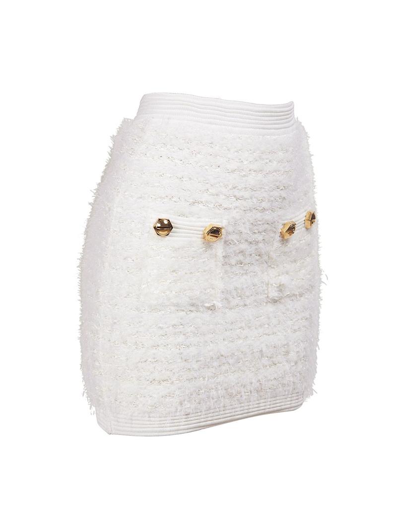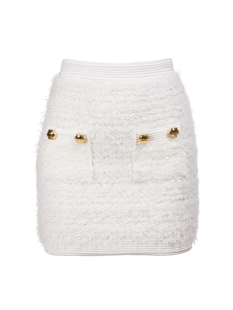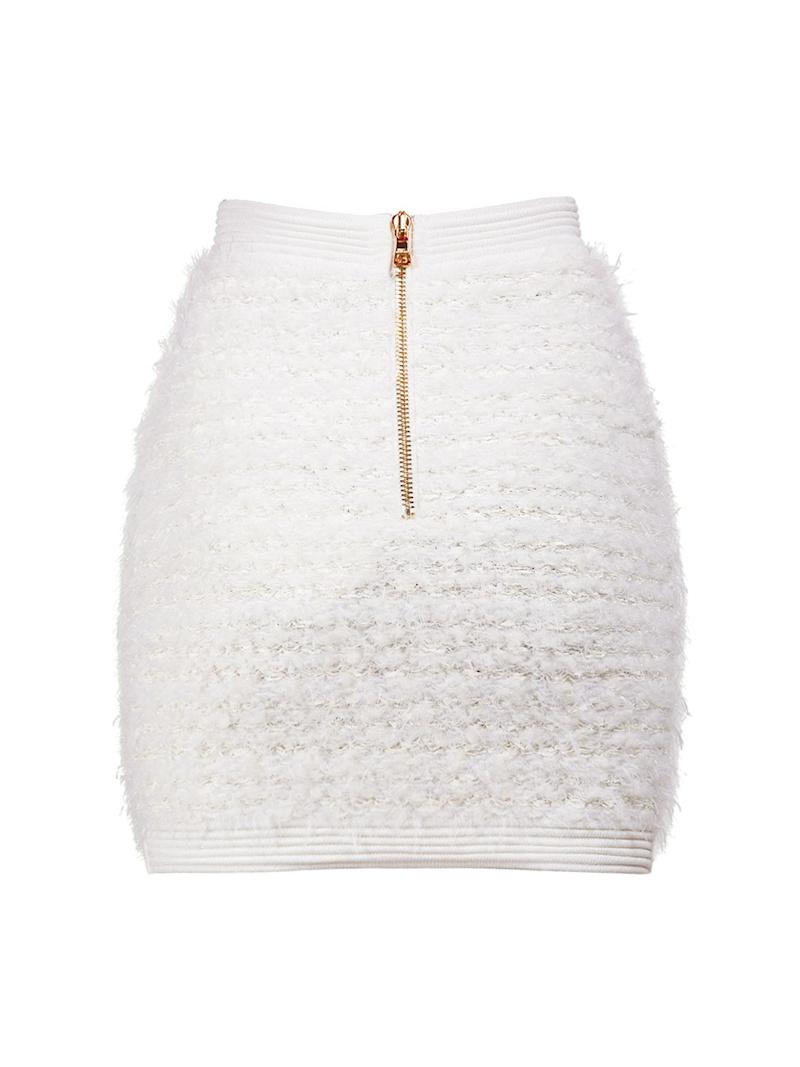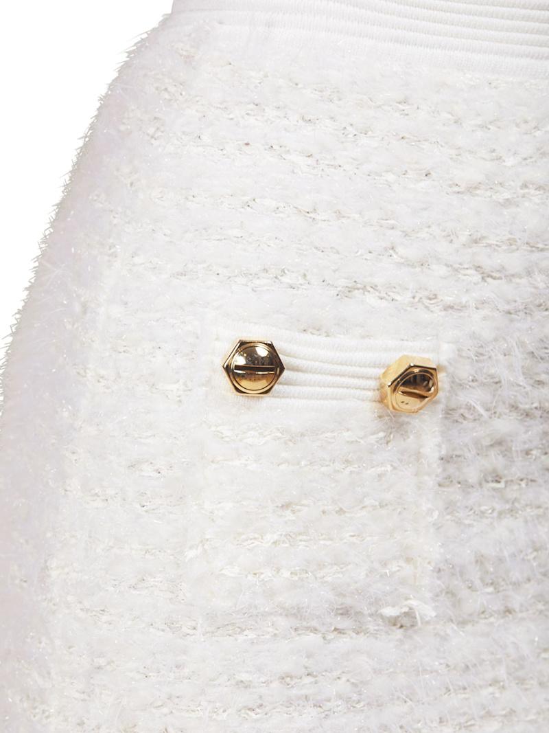 花呢金银丝迷你短裙 - 白色 - 女士 - Balmain - 背面拉链开合.