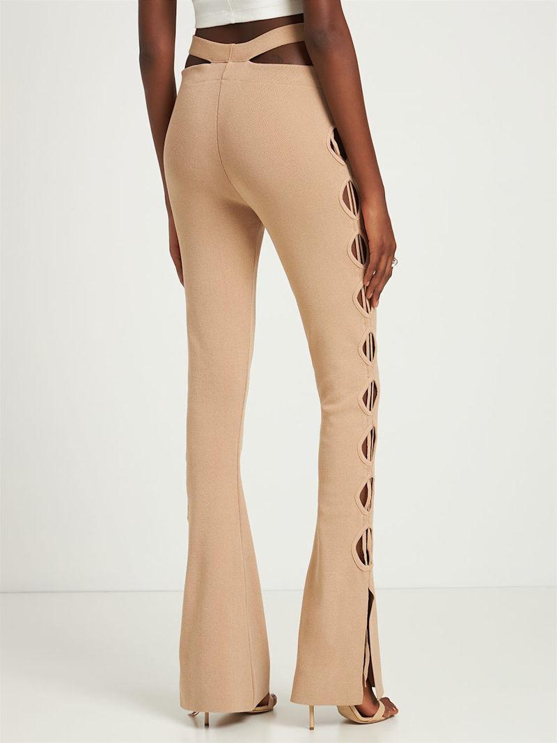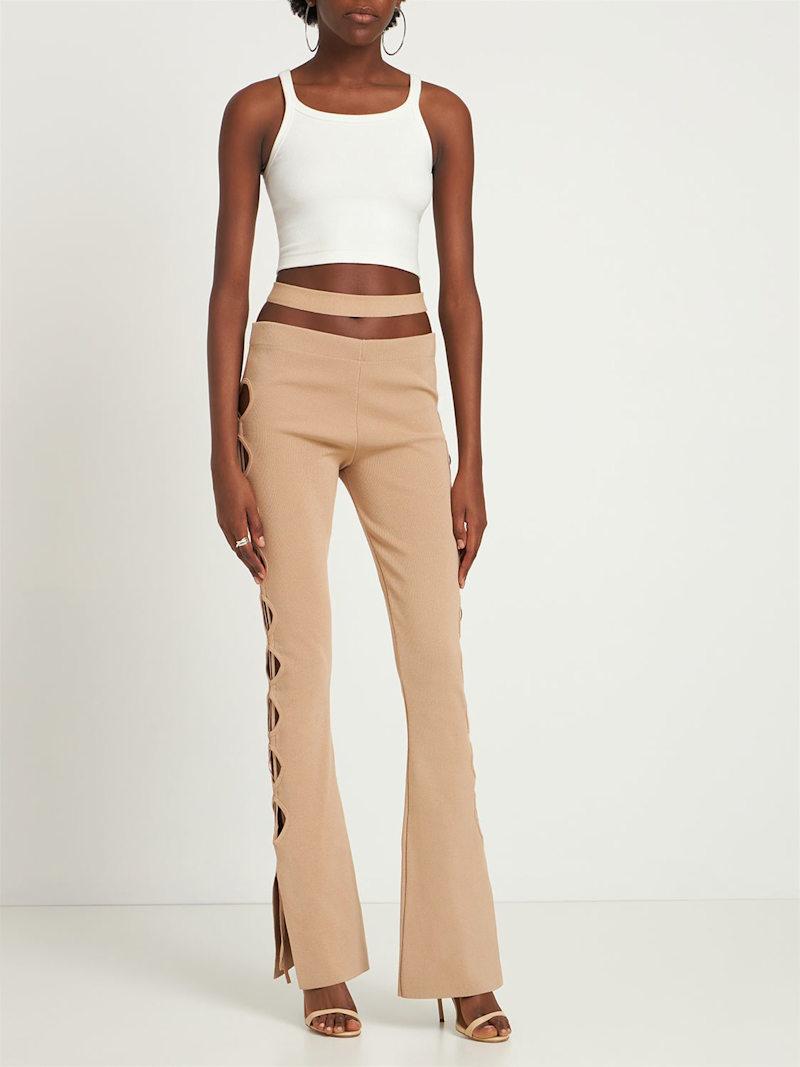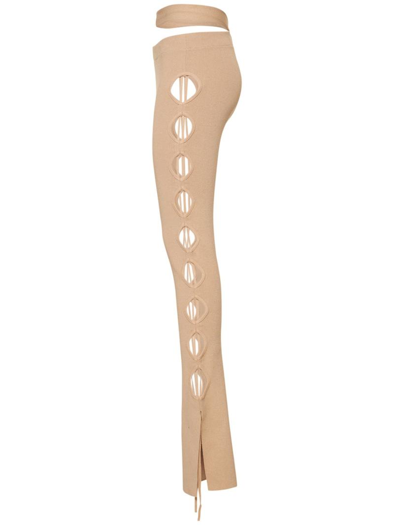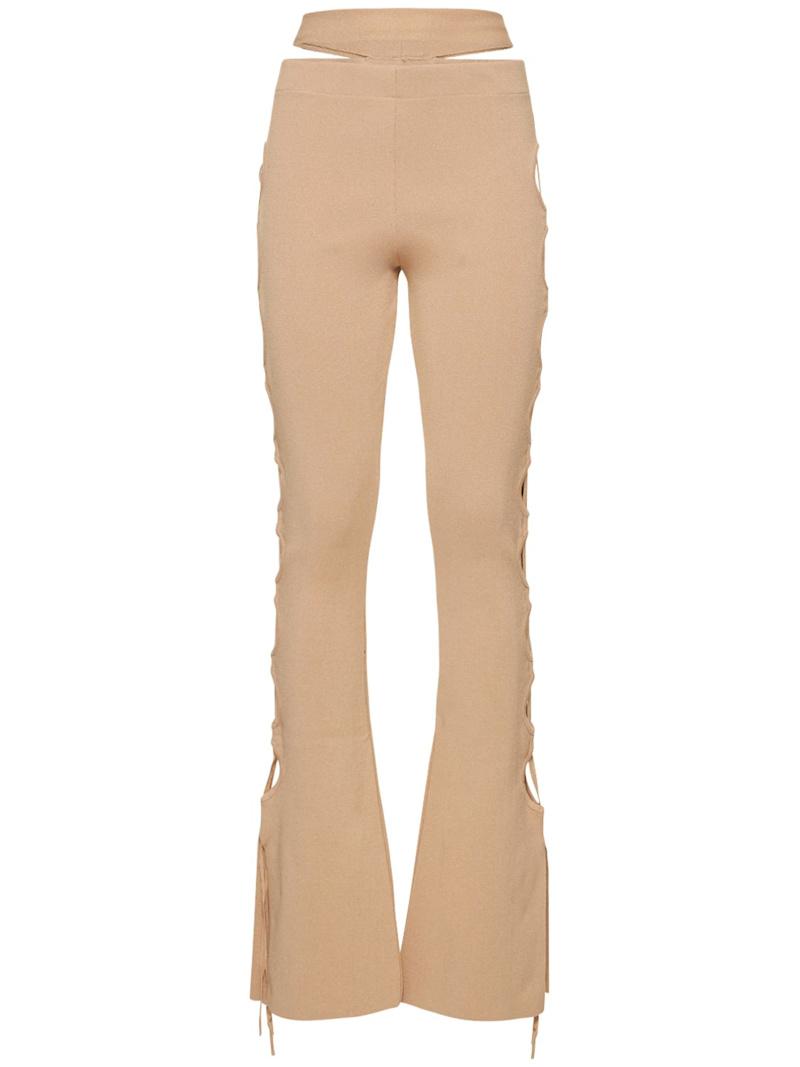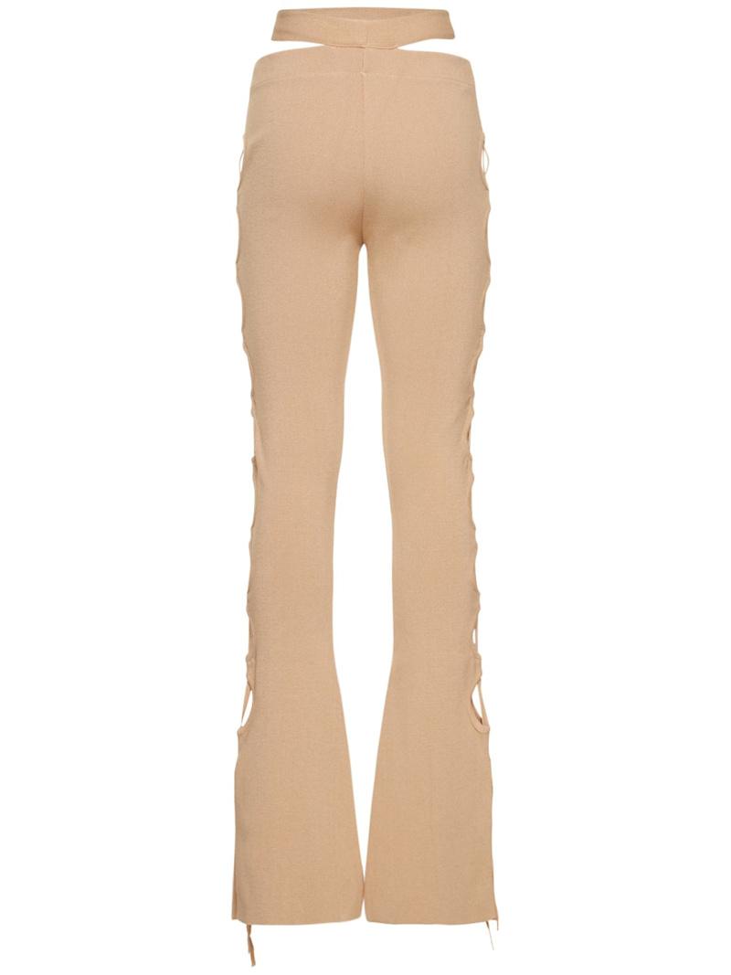 镂空罗纹针织天鹅绒喇叭裤 - 裸色 - 女士 - Andreadamo - 弹性腰头.