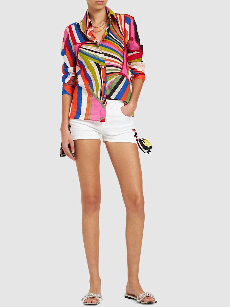 牛仔短裤 - 白色 - 女士 - Pucci - 正面纽扣和隐藏式拉链开合.