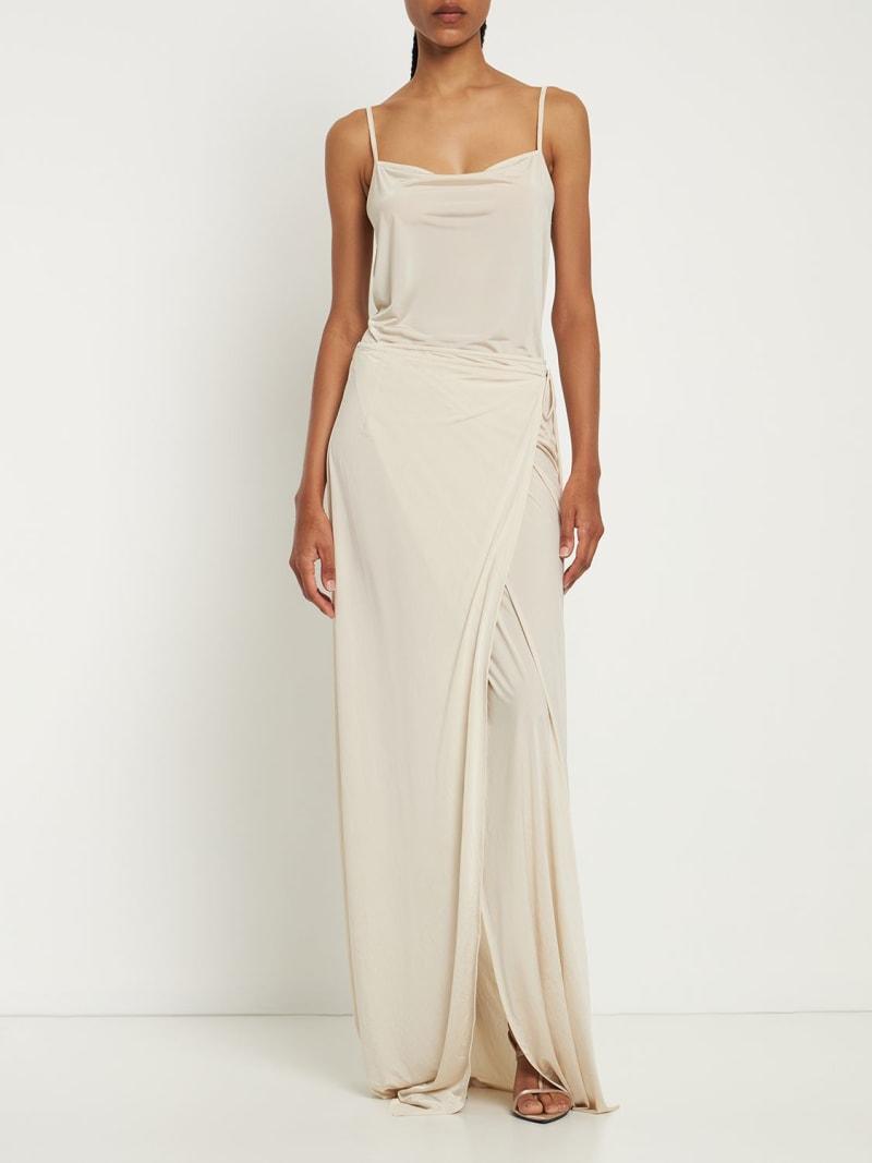 绸缎平纹针织长款半身裙 - 淡褐色 - 女士 - Dries Van Noten - 缠绕式系带开合