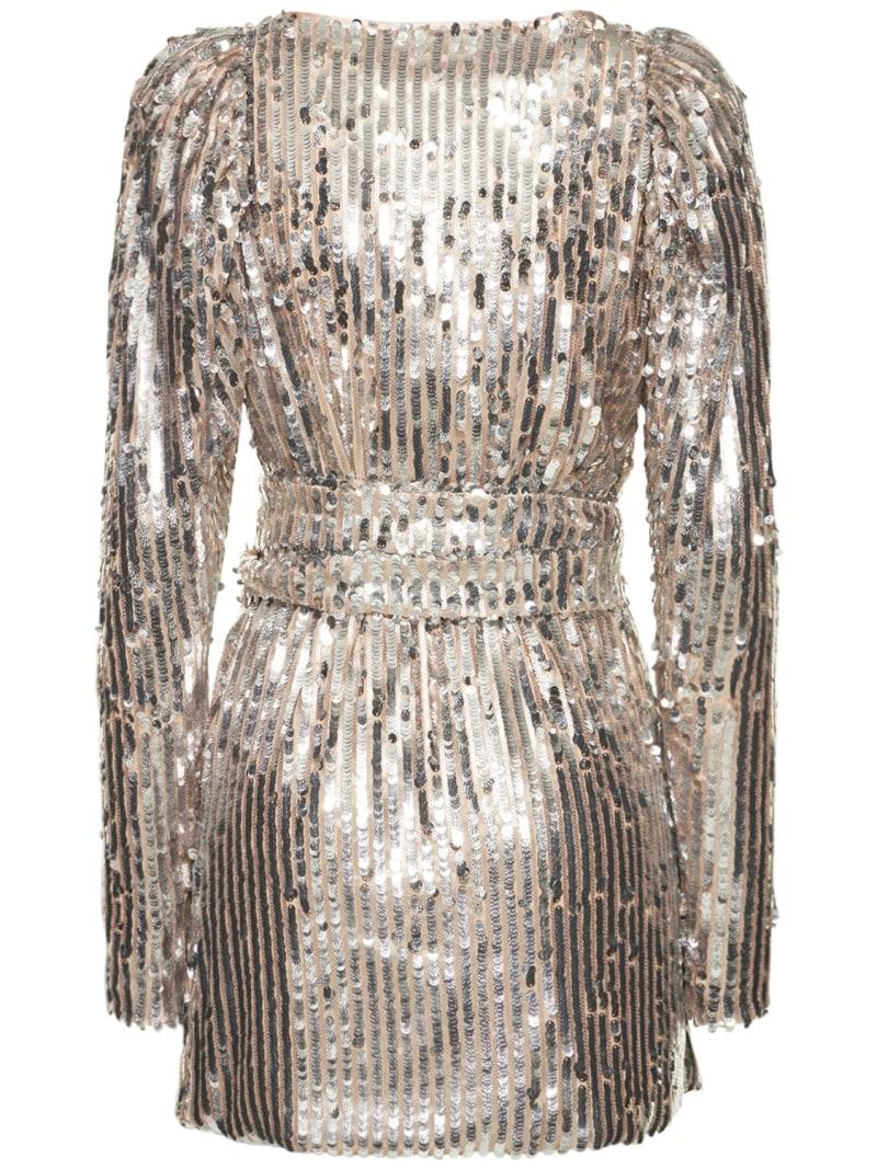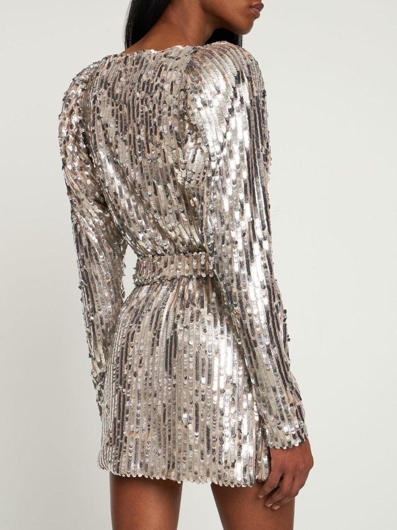 Bridget装饰围裹式迷笛连衣裙 - 银色 - 女士 - Rotate - 正面可调节系带开合.