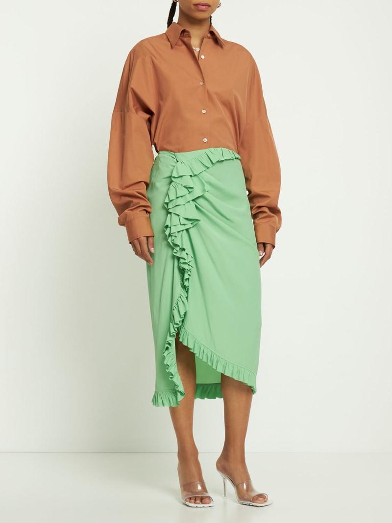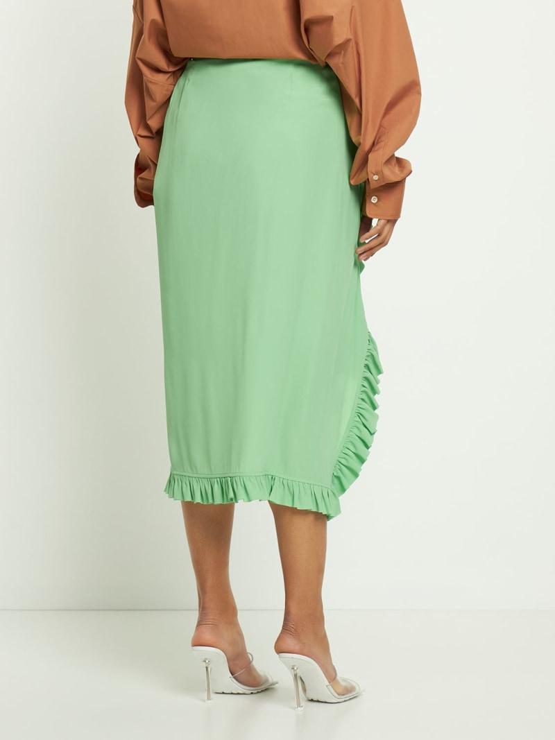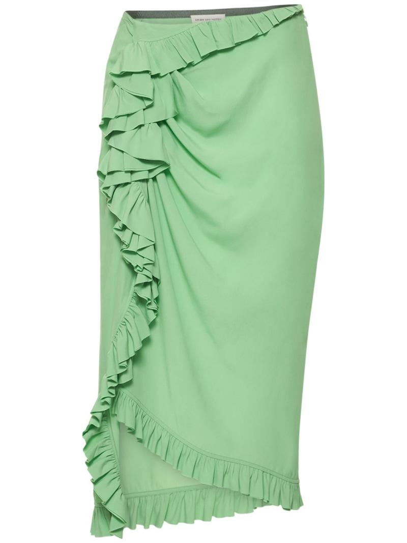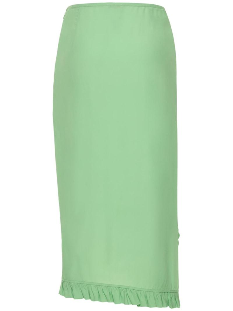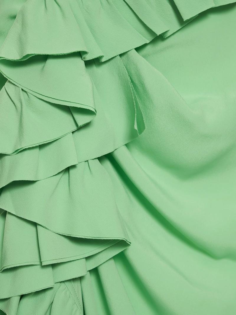 真丝混纺绉纱褶饰迷笛半身裙 - 浅绿色 - 女士 - Dries Van Noten - 侧边拉链开合.