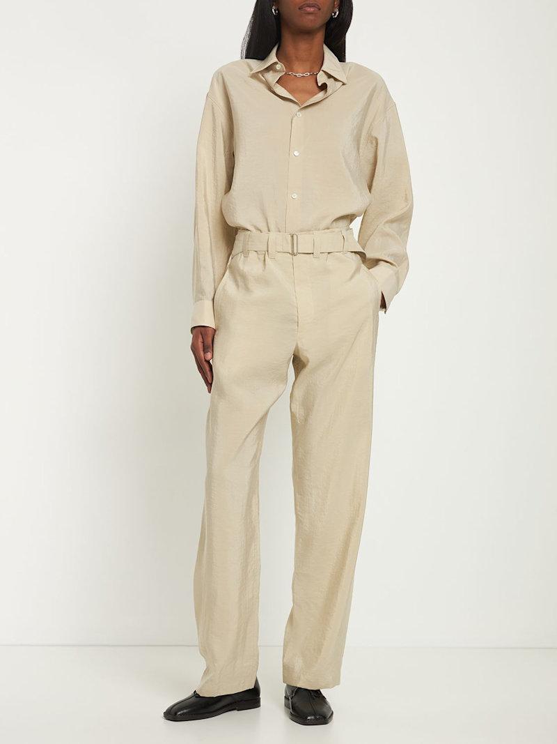 系腰带柔软真丝混纺裤子 - 米黄色 - 女士 - Lemaire - 包括搭扣开合腰带.