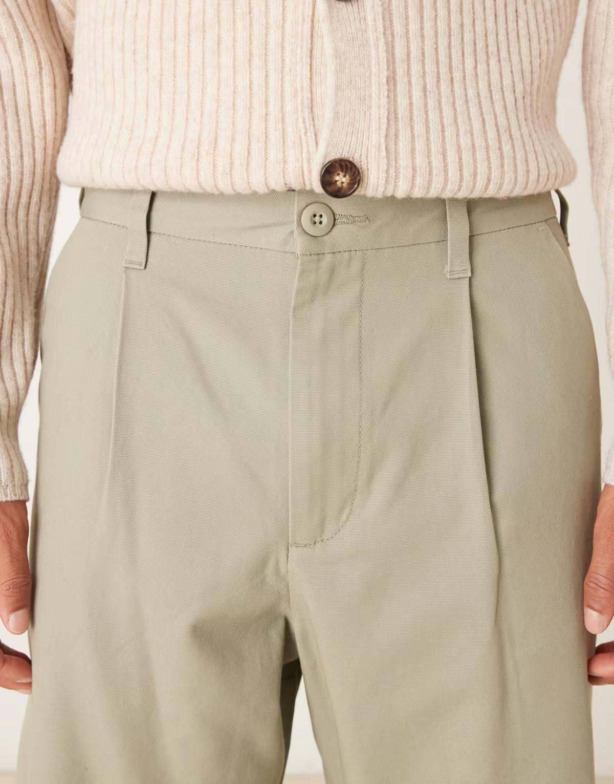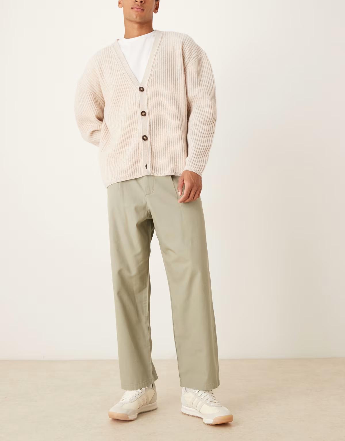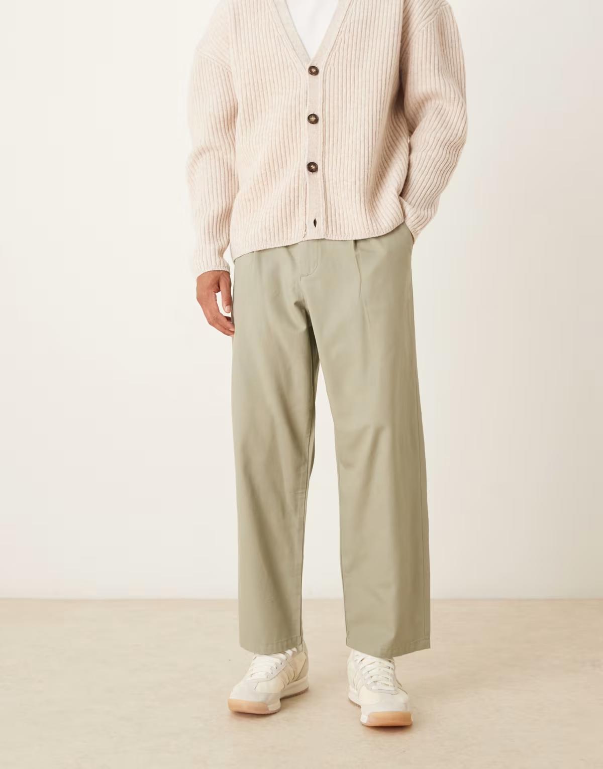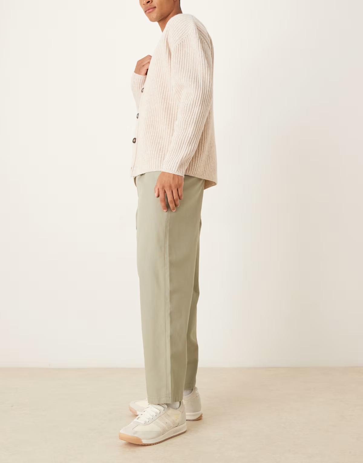 ASOS DESIGN relaxed tapered trousers in light khaki with pleats