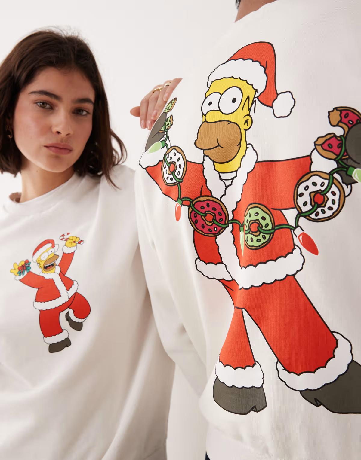 ASOS DESIGN unisex relaxed sweatshirt with the Simpsons Christmas print in cream